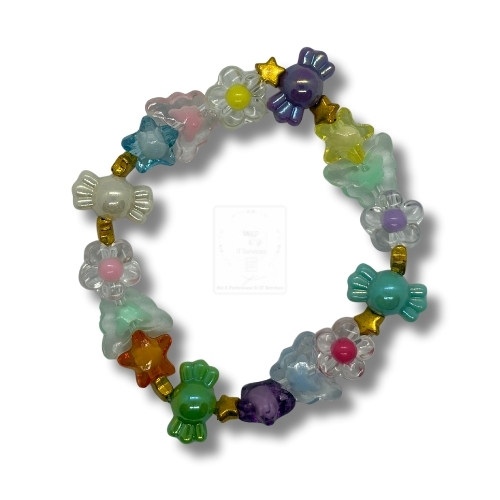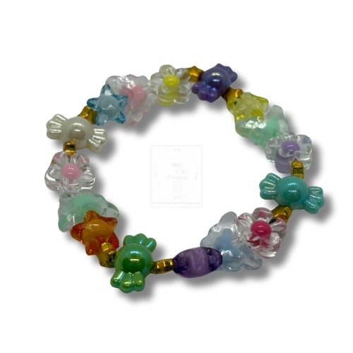 Pastellzauber – Kinderarmband aus Glasperlen mit Stern, Blüte & Bonbon