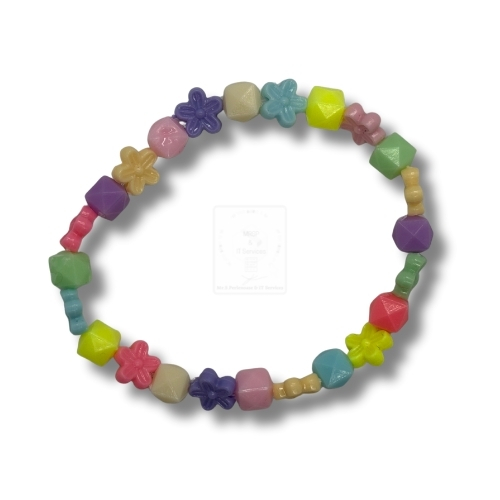 Pastellmix – Kinderarmband aus Glasperlen mit Blüten & Würfeln