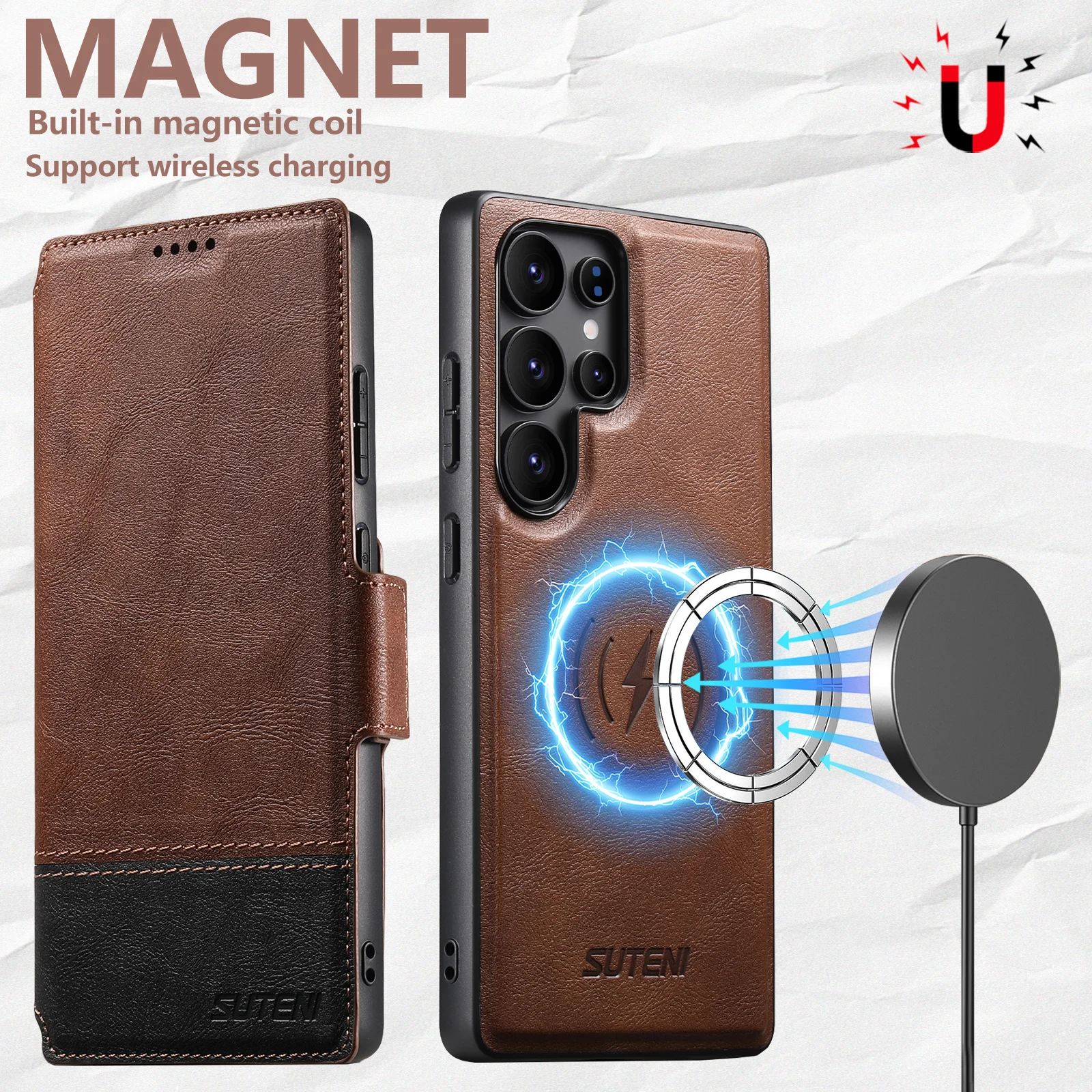 Magnetische PU-Leder Wallet Hülle mit Wireless Charging für Samsung Galaxy