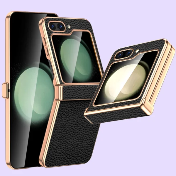 Die Kuh leder hülle hat ein stilvolles Litschi muster und metall beschichtete Kanten.