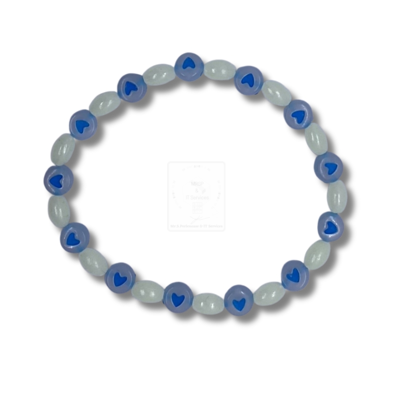 Blaues Herz-Leuchtperlenarmband – Handgefertigt