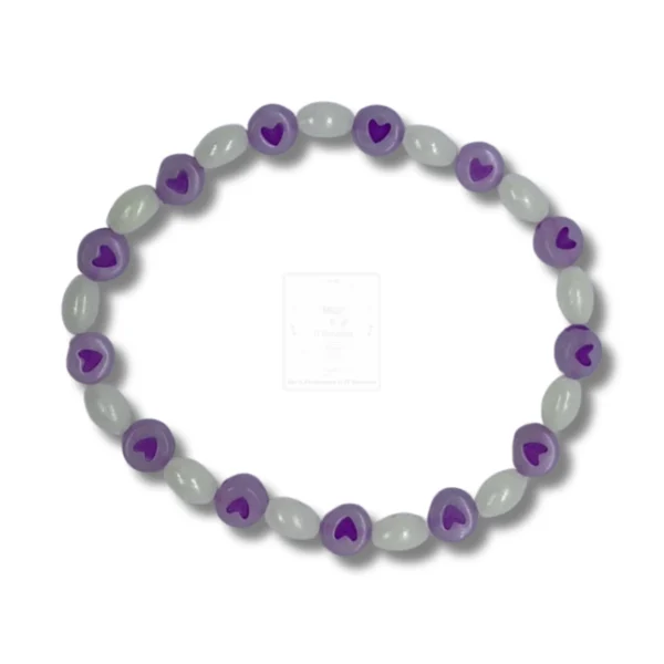 Lila Herz-Leuchtperlenarmband – Handgefertigt