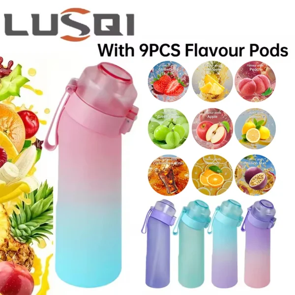 LUSQI 650 ml Wasserflasche mit 9 Geschmacksringen