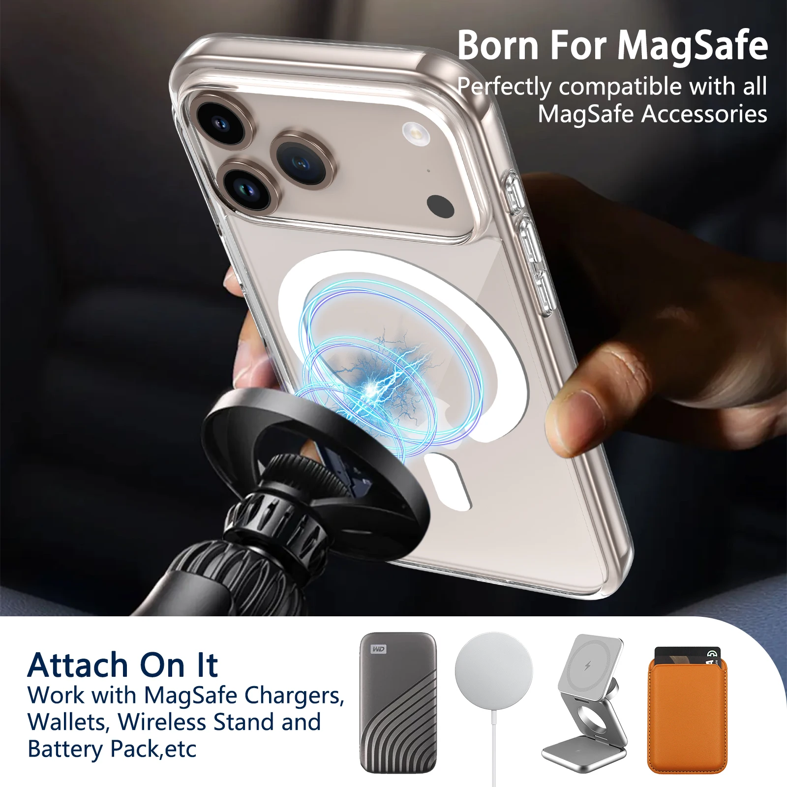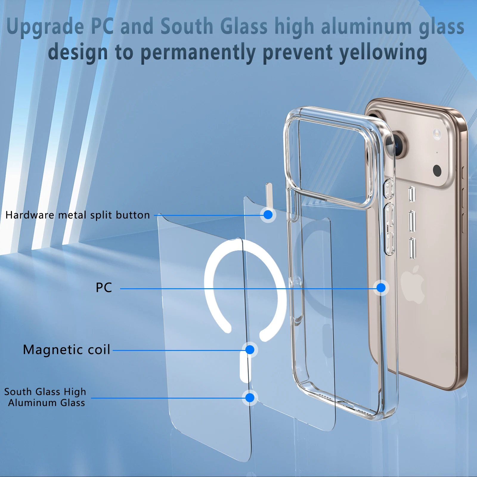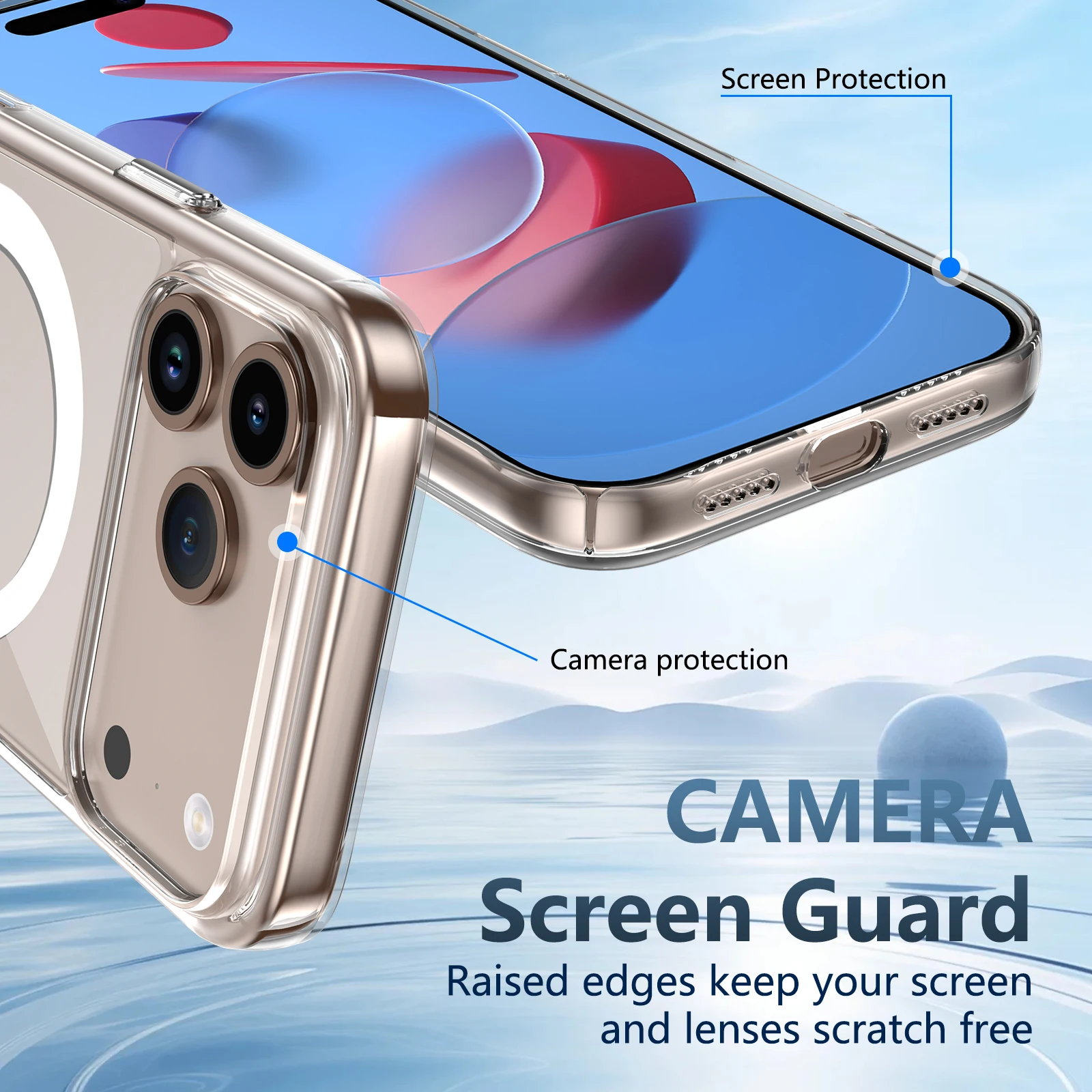Diese Premium‑Hülle besteht aus robustem, gehärtetem Glas, das nicht vergilbt, und starker Kantenrückseite mit integrierter MagSafe‑Technologie. Sie schützt Ihr iPhone zuverlässig vor Kratzern und Stürzen und lässt dennoch das Design klar zur Geltung kommen. Der Magnetring unterstützt kabelloses Laden, die Aussparungen sind präzise gearbeitet. Für Nutzer, die Ästhetik und hochwertigen Schutz gleichermaßen wünschen.