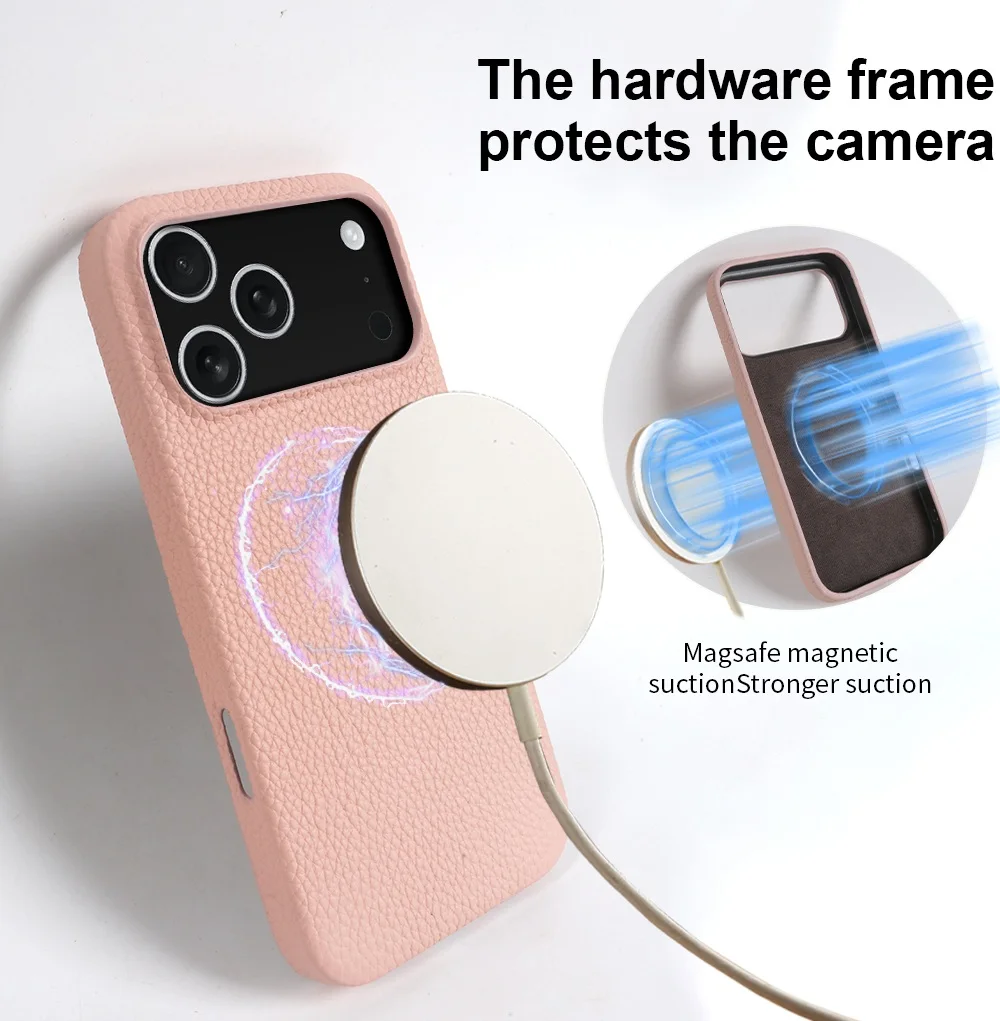 Magnetische Echtleder‑Rückabdeckung für iPhone 11–17 (MagSafe‑fähig)