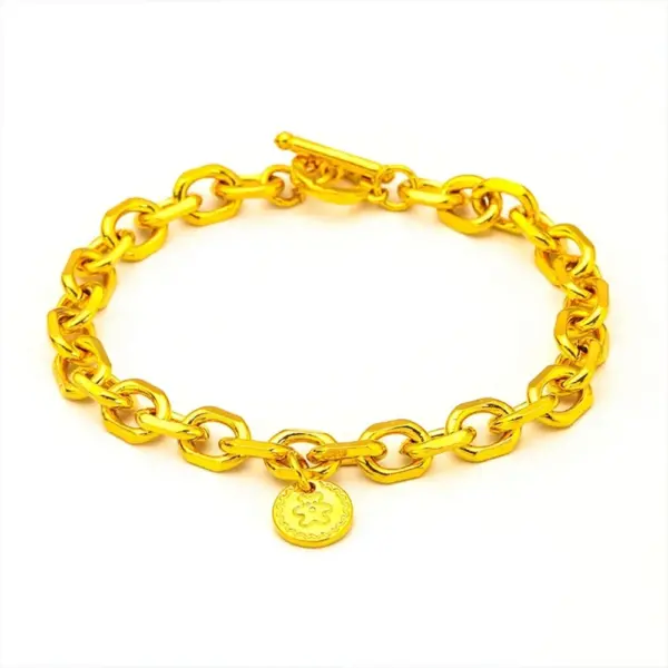 Luxus O-Link Armband 18K Goldfarben – Mattiertes Anhängerarmband für Damen