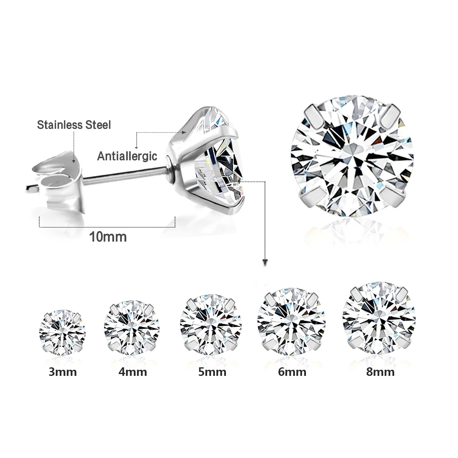 LUXUSTEEL Kristall Zirkon Ohrstecker – Edelstahl Piercing Schmuck