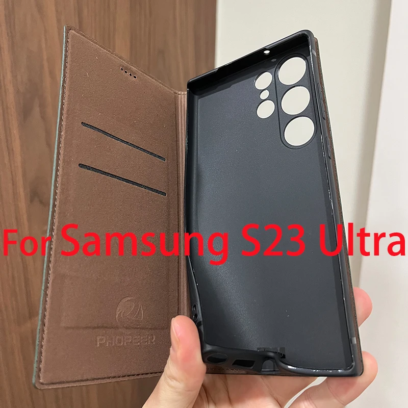 Magnetische Echtleder Flip Wallet Hülle für Samsung Galaxy