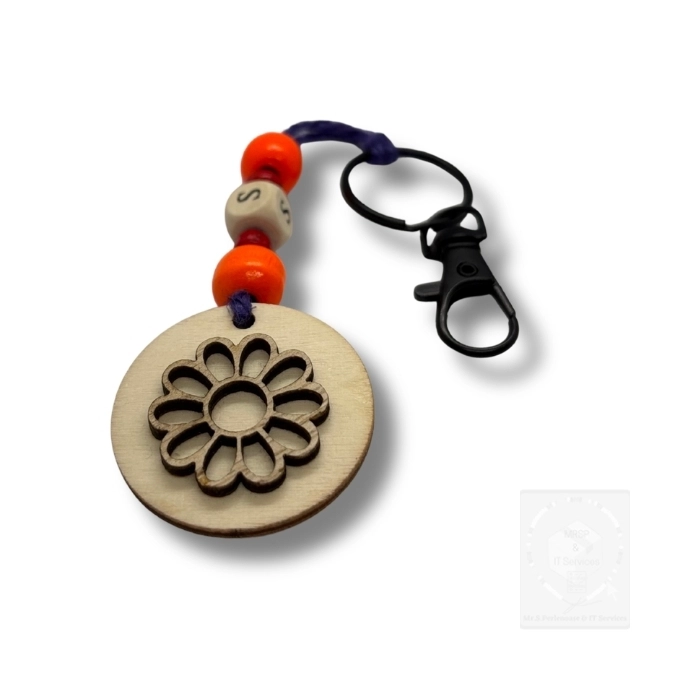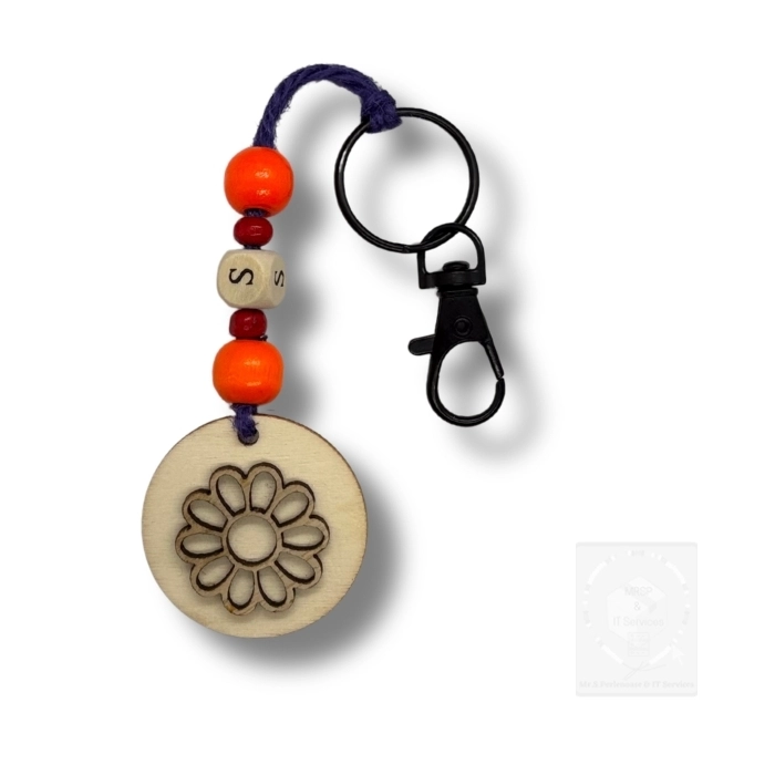 Nachhaltiger Frühlings-Schlüsselanhänger mit Holz Blumenmotiv rund