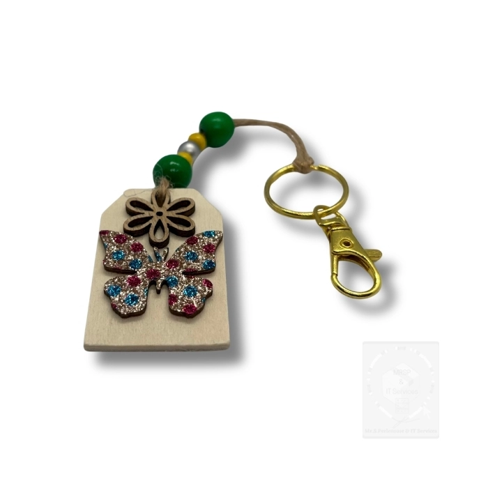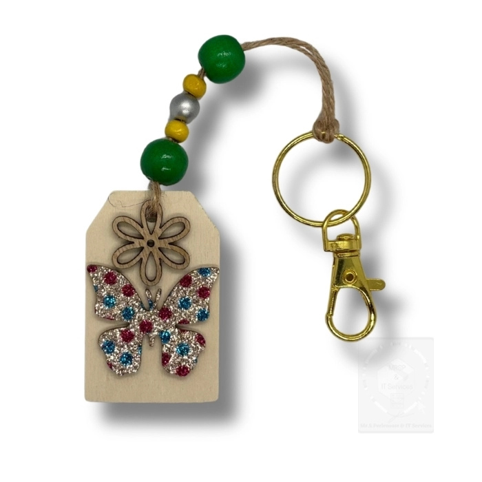 Nachhaltiger Frühlings-Schlüsselanhänger mit Holz Schmetterling & Glitzerdetail