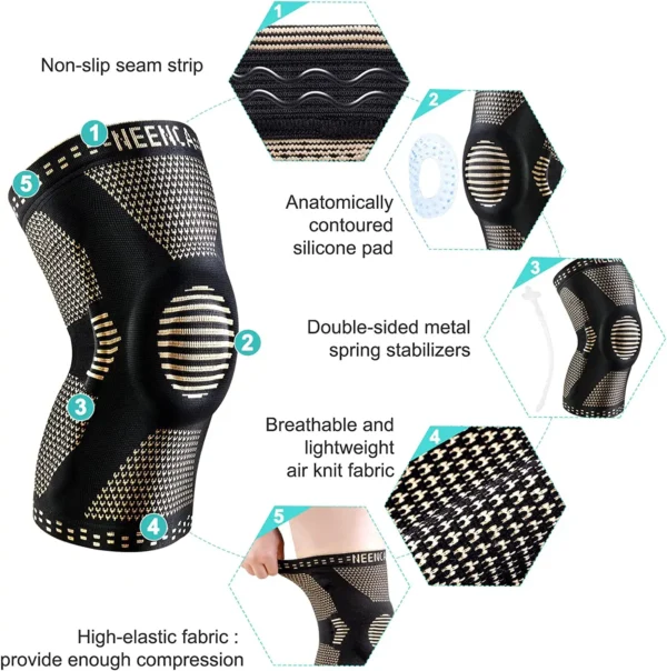 NEENCA Kupfer‑Kniebandage mit Patella‑Gel‑Pad