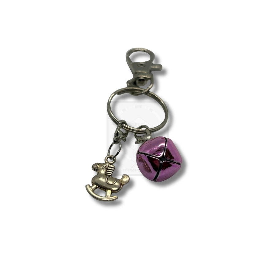 Nostalgischer Schlüsselanhänger mit Schaukelpferd & Glöckchen – Handgearbeitet