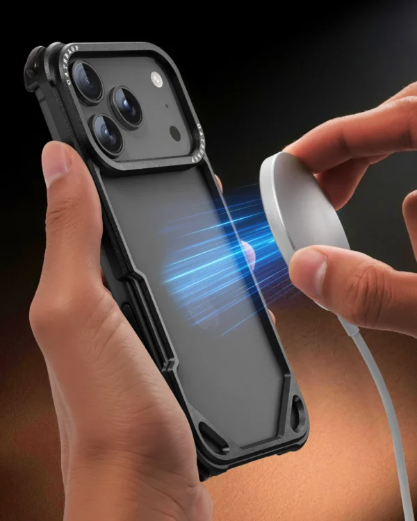 Diese Oatsbasf Metall‑MagSafe Hülle verzichtet bewusst auf dicke Rahmen, um das Design klar wirken zu lassen. Der rahmenlose Stil kombiniert Festigkeit und Stil, während der integrierte Magnetring kabeloses Laden und Zubehörnutzen ermöglicht. Die Konstruktion schützt zuverlässig gegen Kratzer und Stöße, ohne klobig zu wirken. Aussparungen für Kamera, Tasten und Anschlüsse sind präzise gearbeitet. Für Nutzer, die minimalistisches Design und Schutz in einem Produkt wünschen.