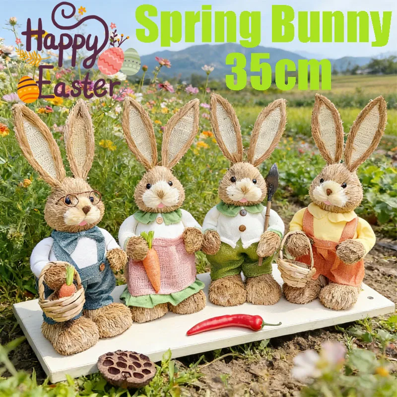 Handgewebter Osterhase aus Gras – Frühlings Korb Dekoration