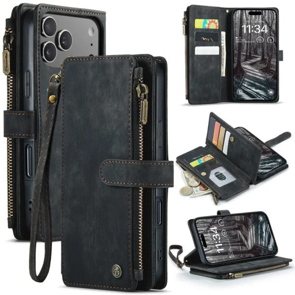 Flip‑Brieftaschen Lederhülle mit Karten, Ständer & Schutz für iPhone 17 / Pro / Air / Max