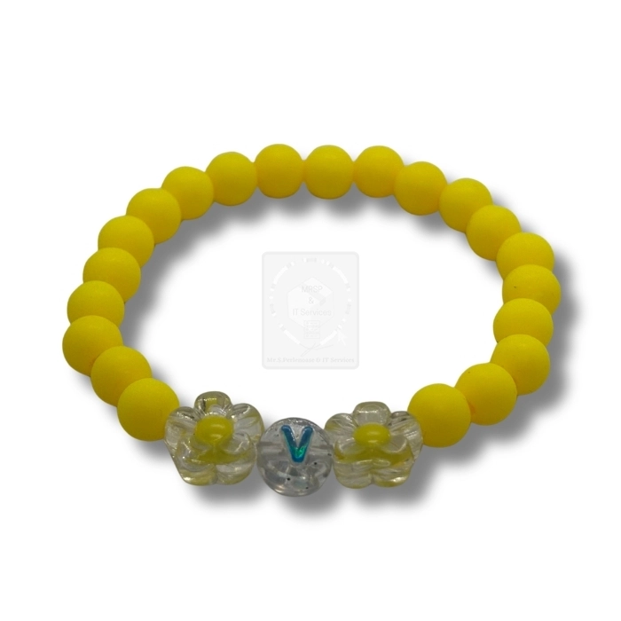 Personalisiertes Blumen Armband Gelb mit Buchstabe V