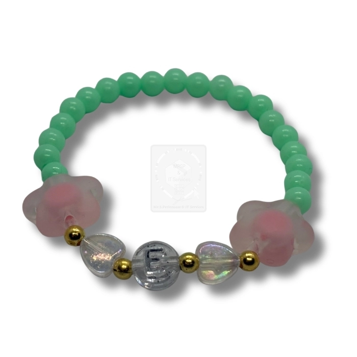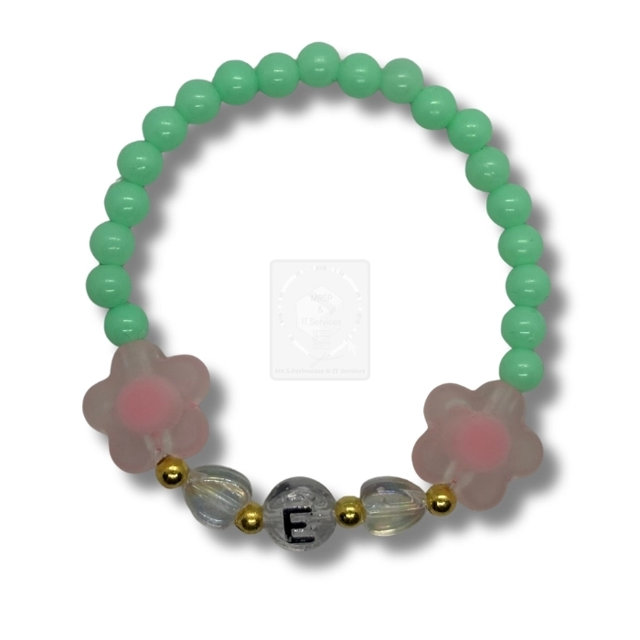 Personalisiertes Blumen Armband Mint mit Buchstabe E