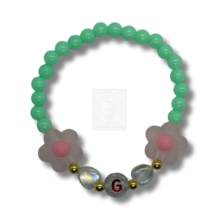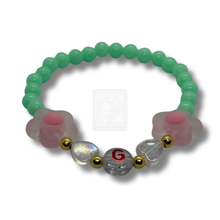 Personalisiertes Blumen Armband Mint mit Buchstabe G