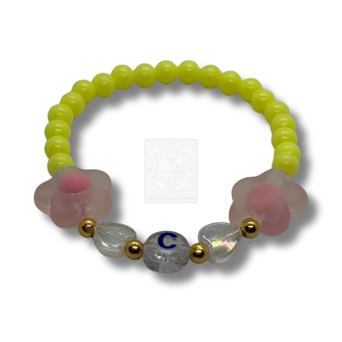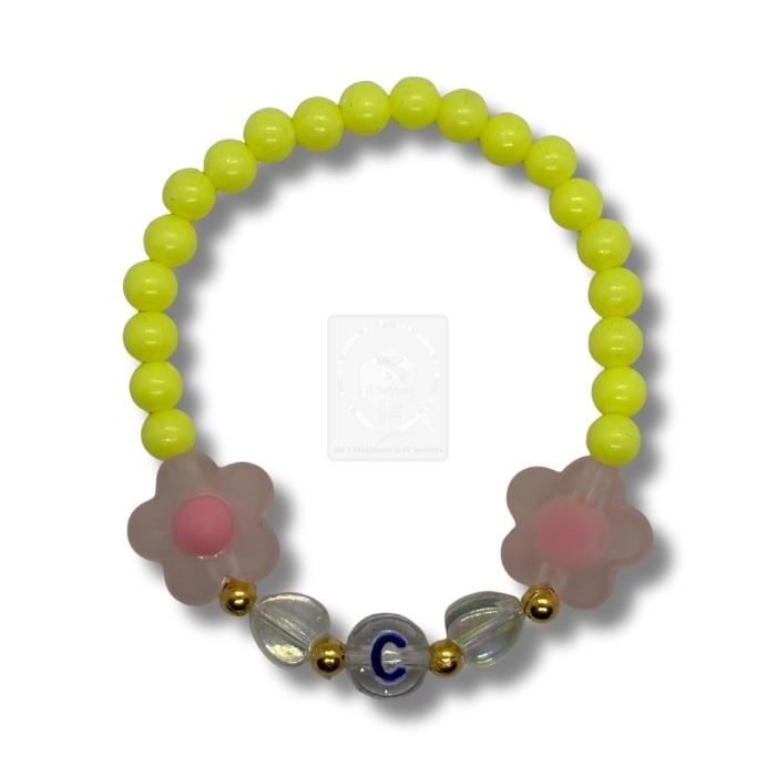 Personalisiertes Blumen Armband Neon Gelb mit Buchstabe C