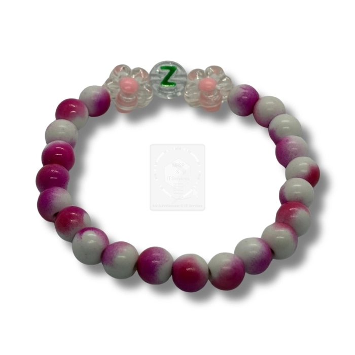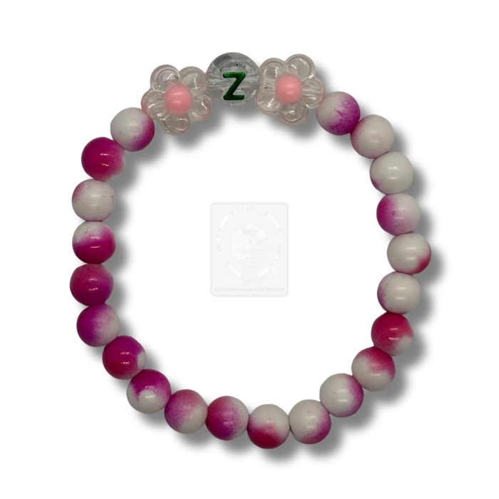 Personalisiertes Blumen Armband Pink Weiß mit Buchstabe Z