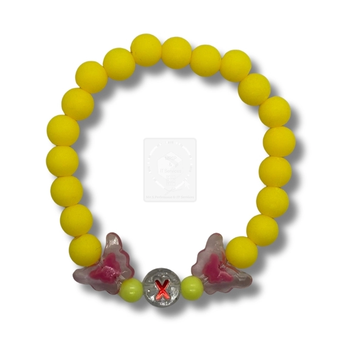 Personalisiertes Schmetterling Armband Neon Gelb mit Buchstabe X