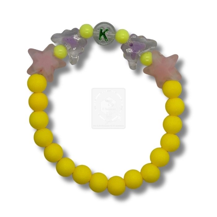 Personalisiertes Stern Schmetterling Armband Gelb mit Buchstabe K