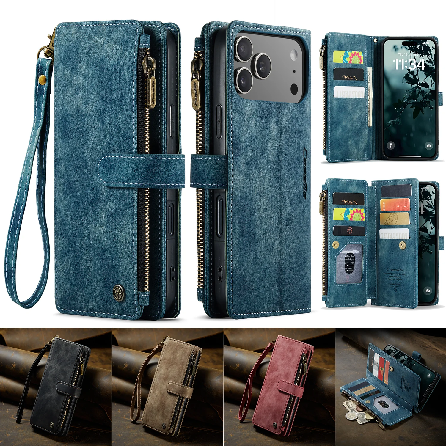 Premium Leder‑Wallet Hülle mit Reißverschluss & Kartenfächern (iPhone 11–17)