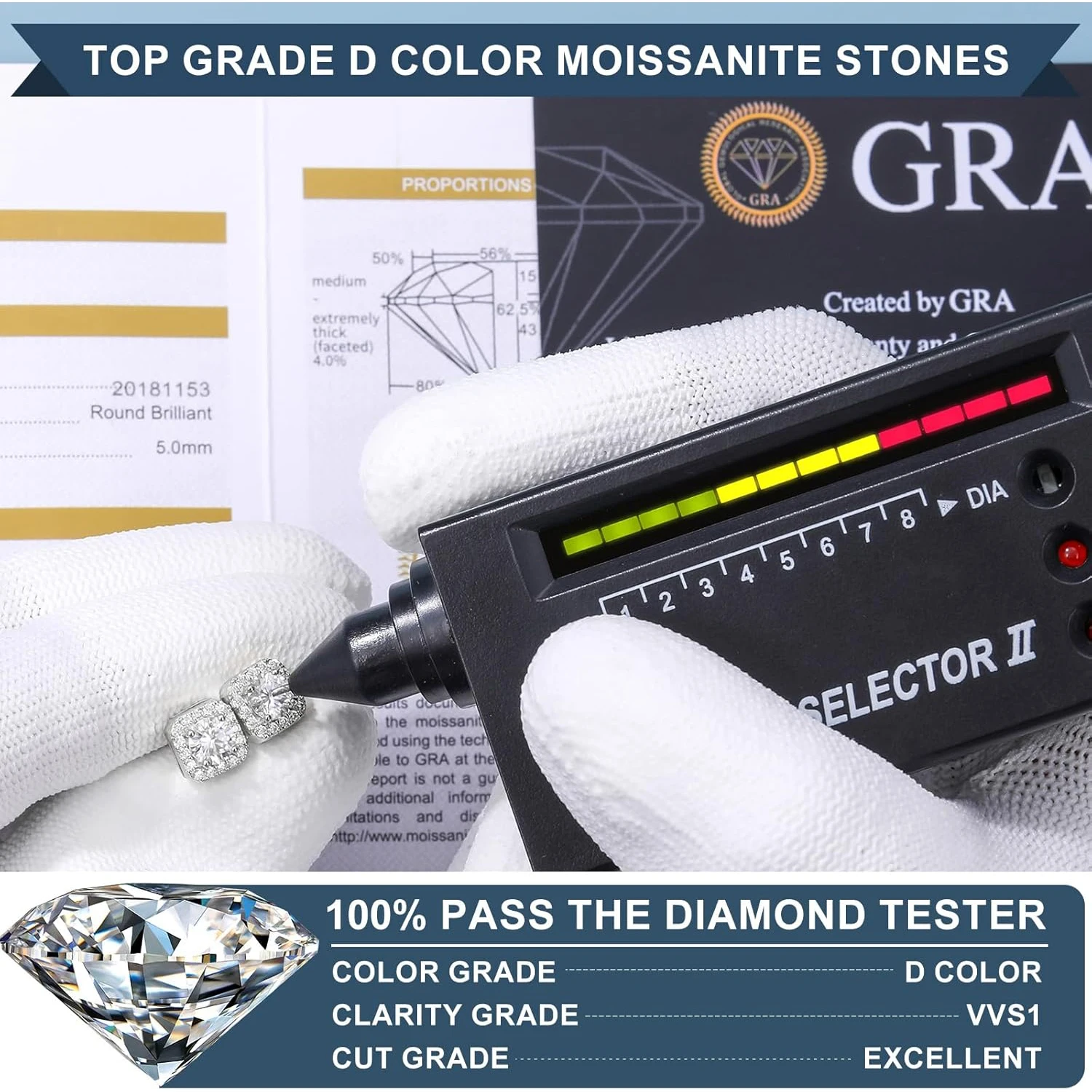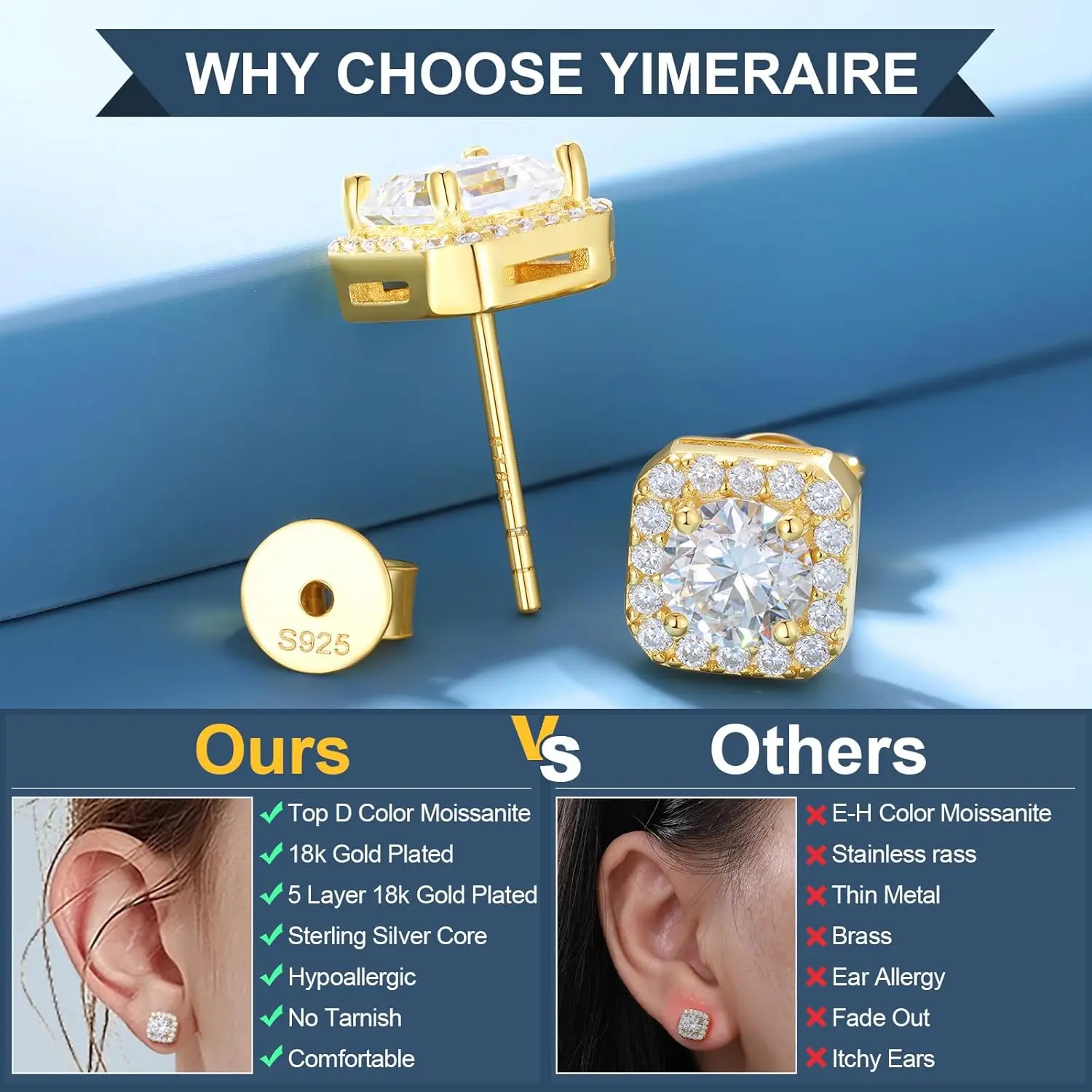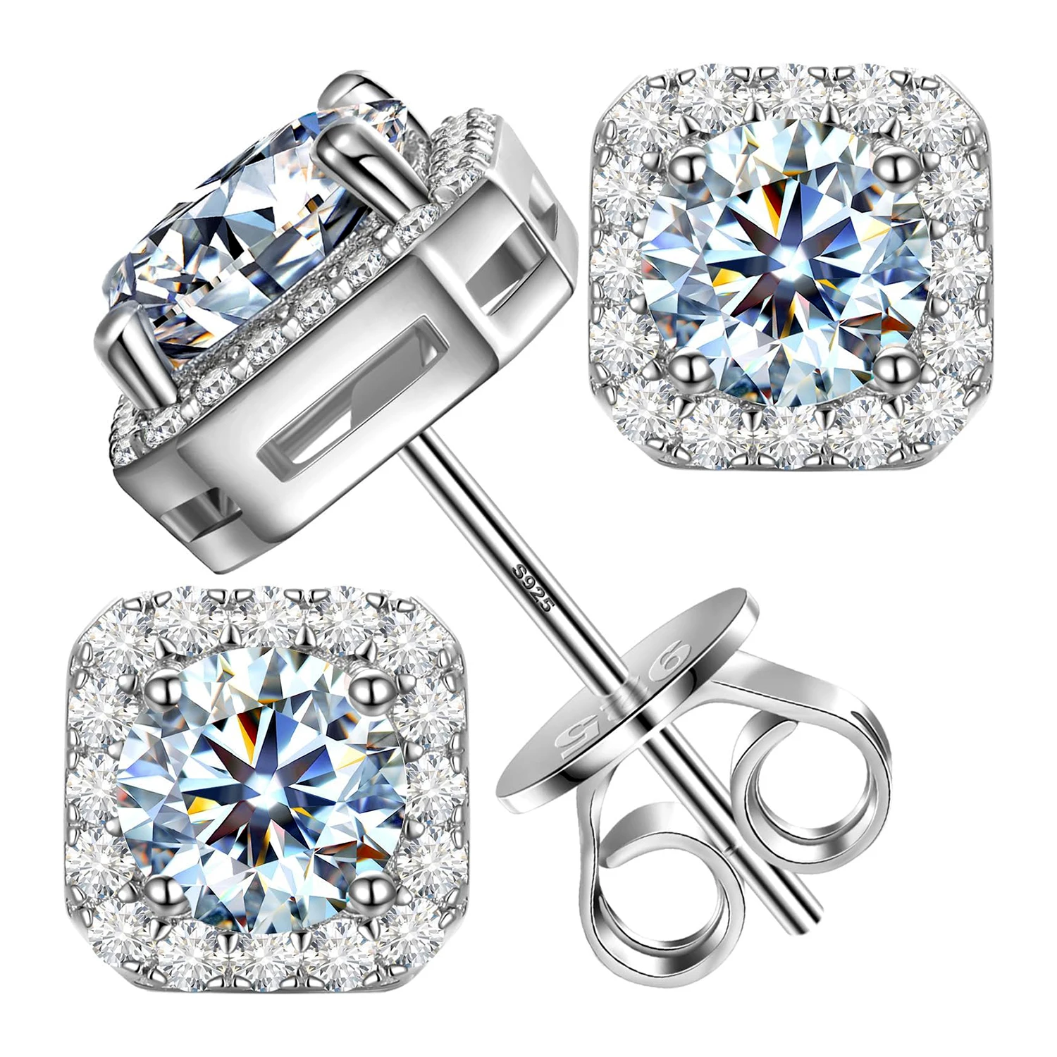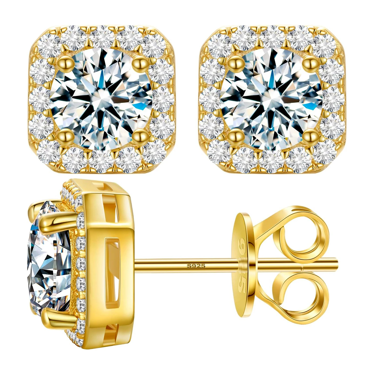 Quadratische Moissanit Ohrstecker 2 Karat – 925 Silber vergoldet