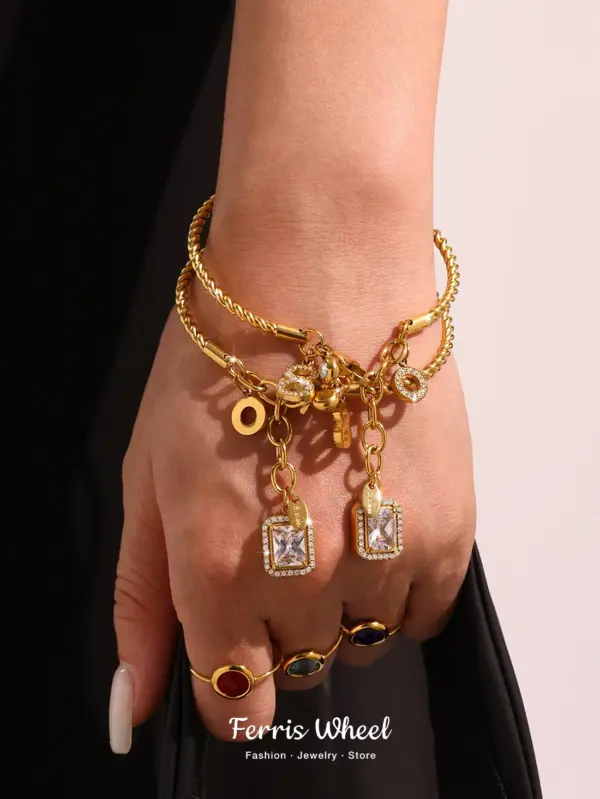 Riesenrad Edelstahl-Zirkon Armreif – Vergoldetes Luxusarmband für Damen