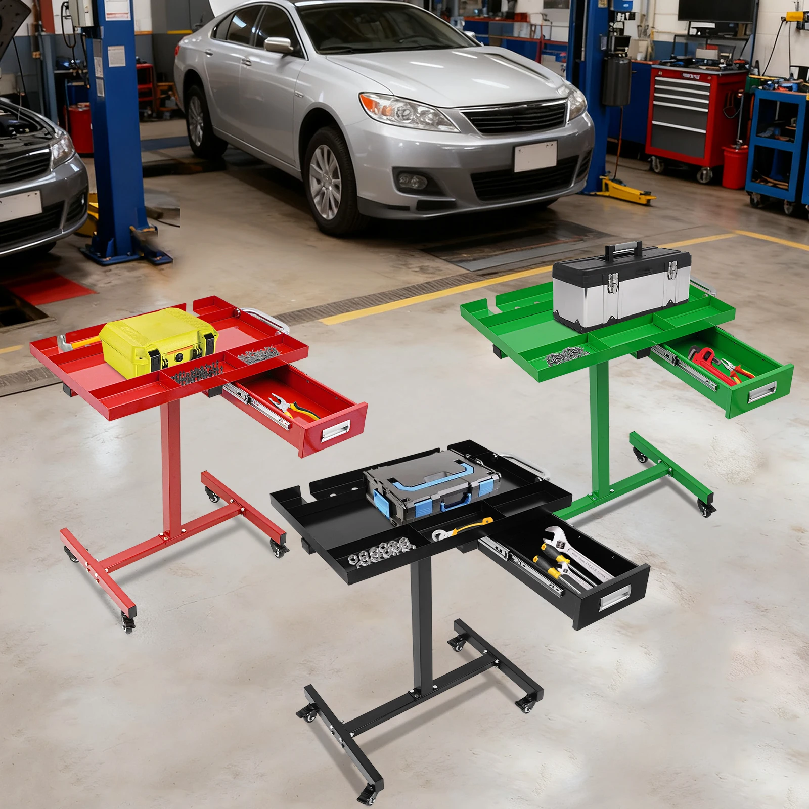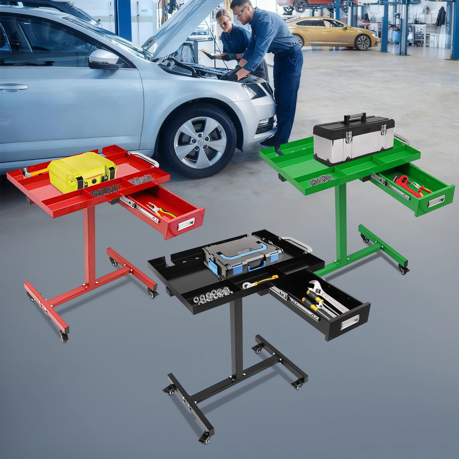 Mobiler Werkzeugwagen mit Schublade und Feststellrädern, 220 Pfund