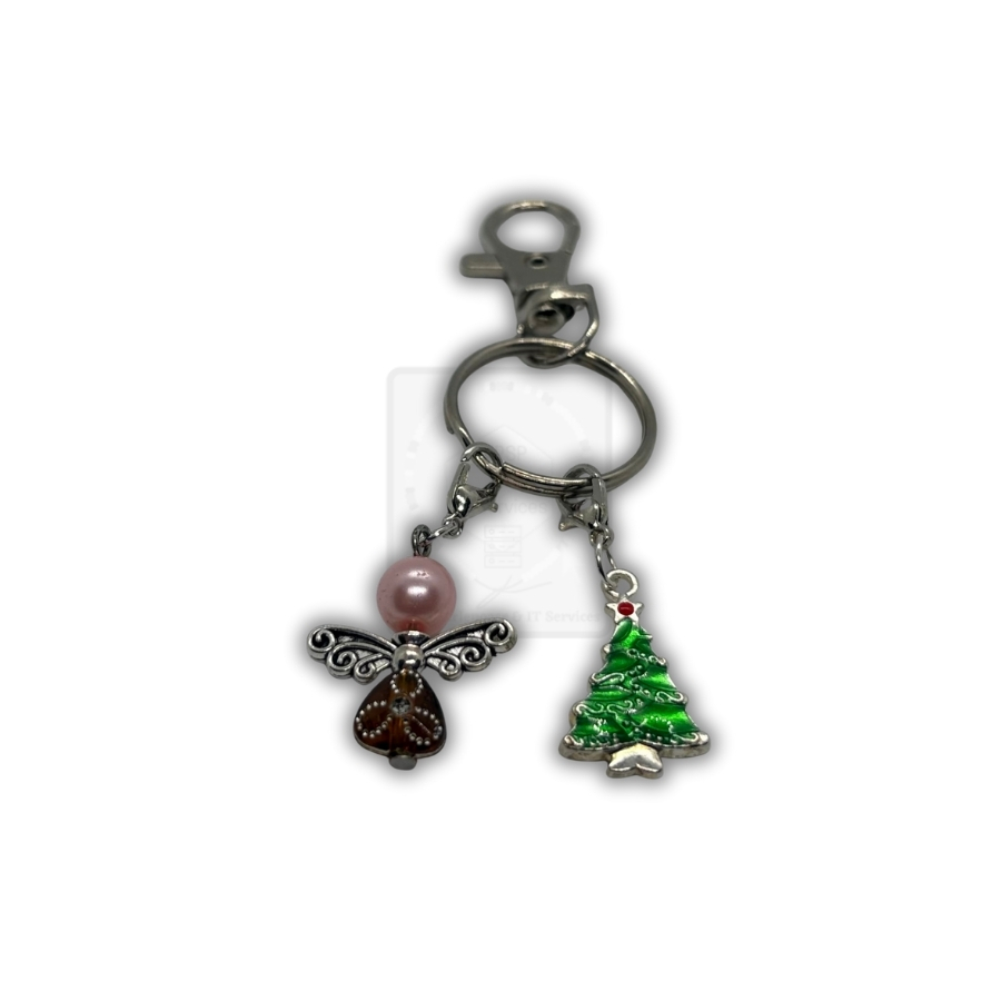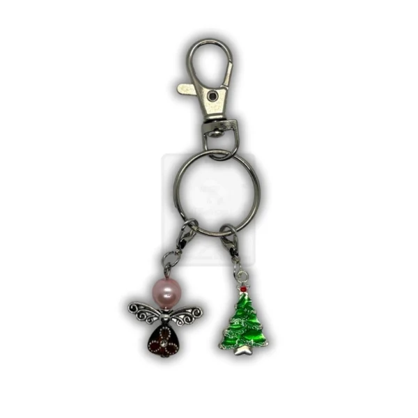 Romantischer Weihnachts-Schlüsselanhänger mit rosa Schutzengel & Tannenbaum
