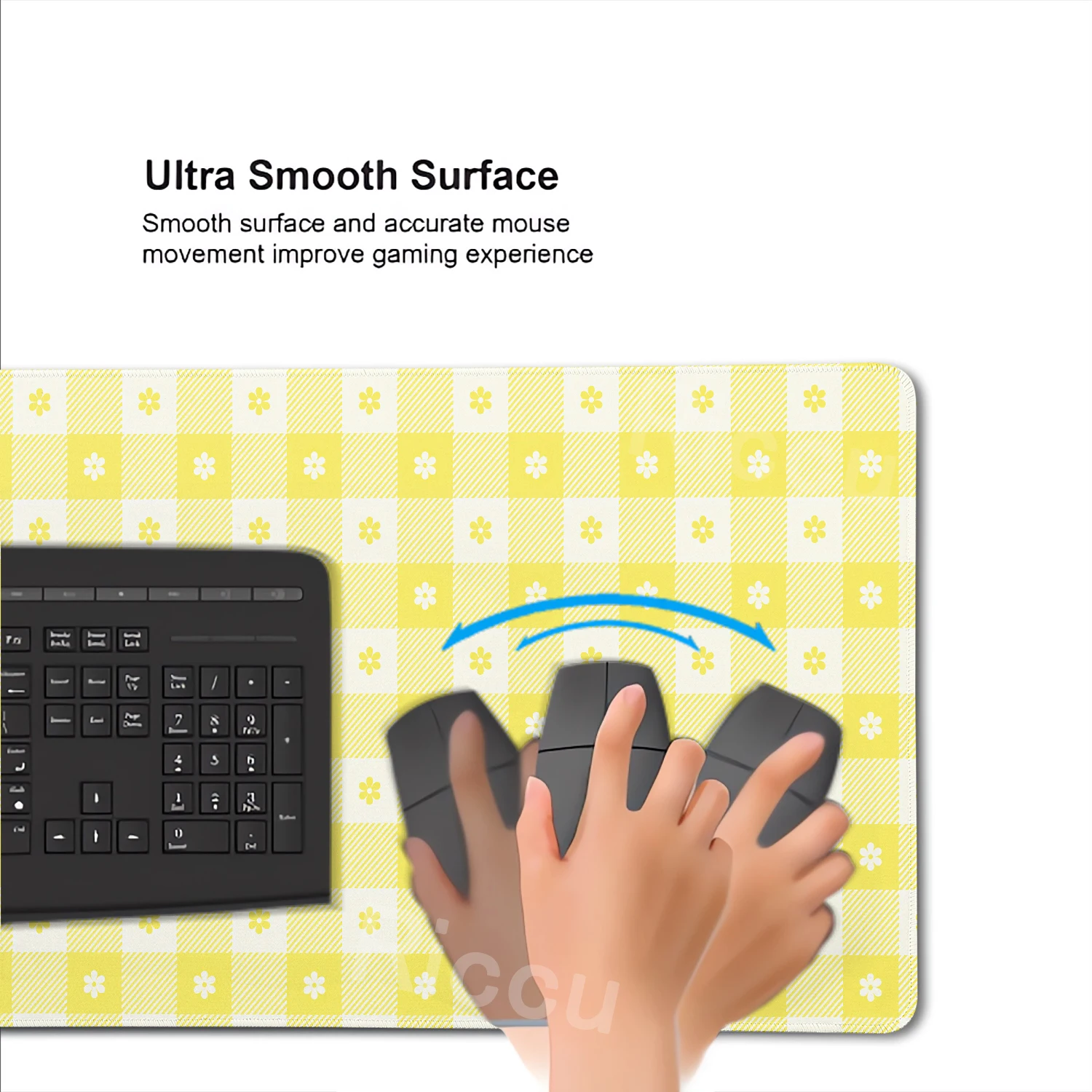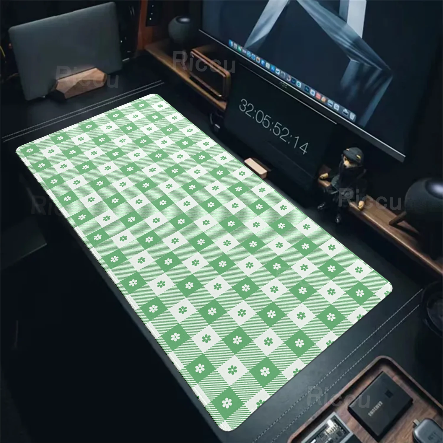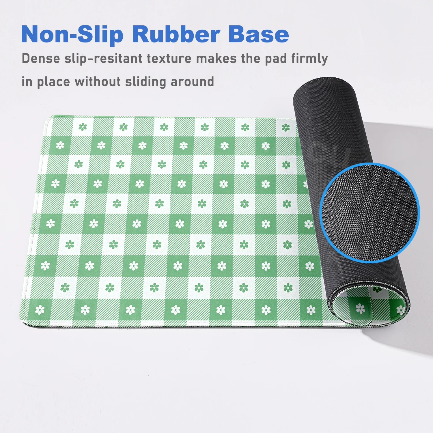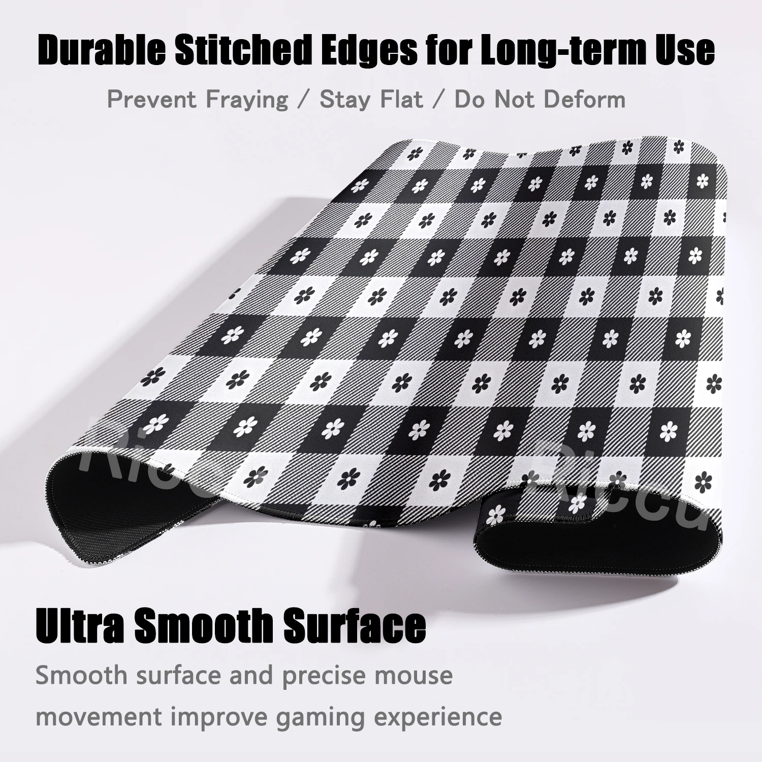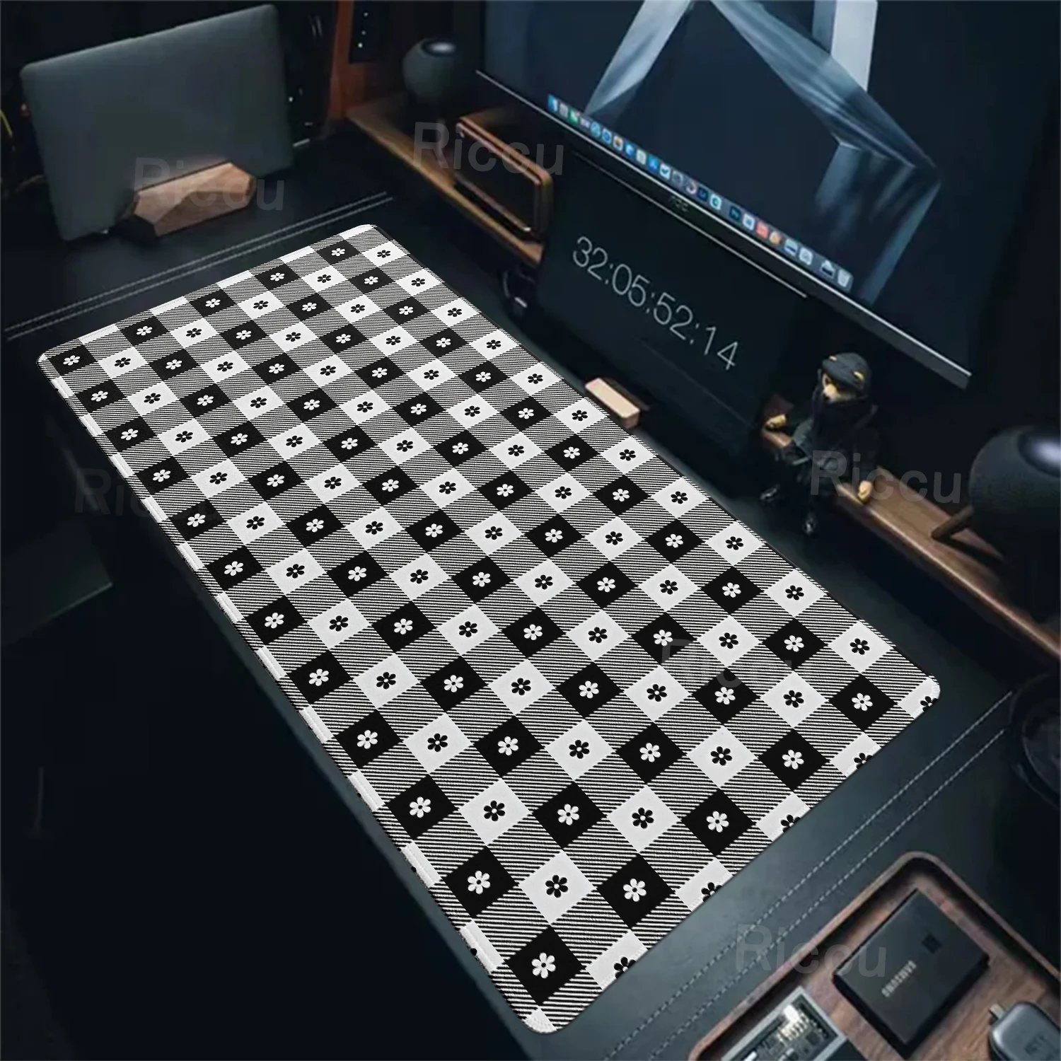 Rosa kariertes Mauspad mit Blumenmotiv – Große Büro-Schreibtischunterlage