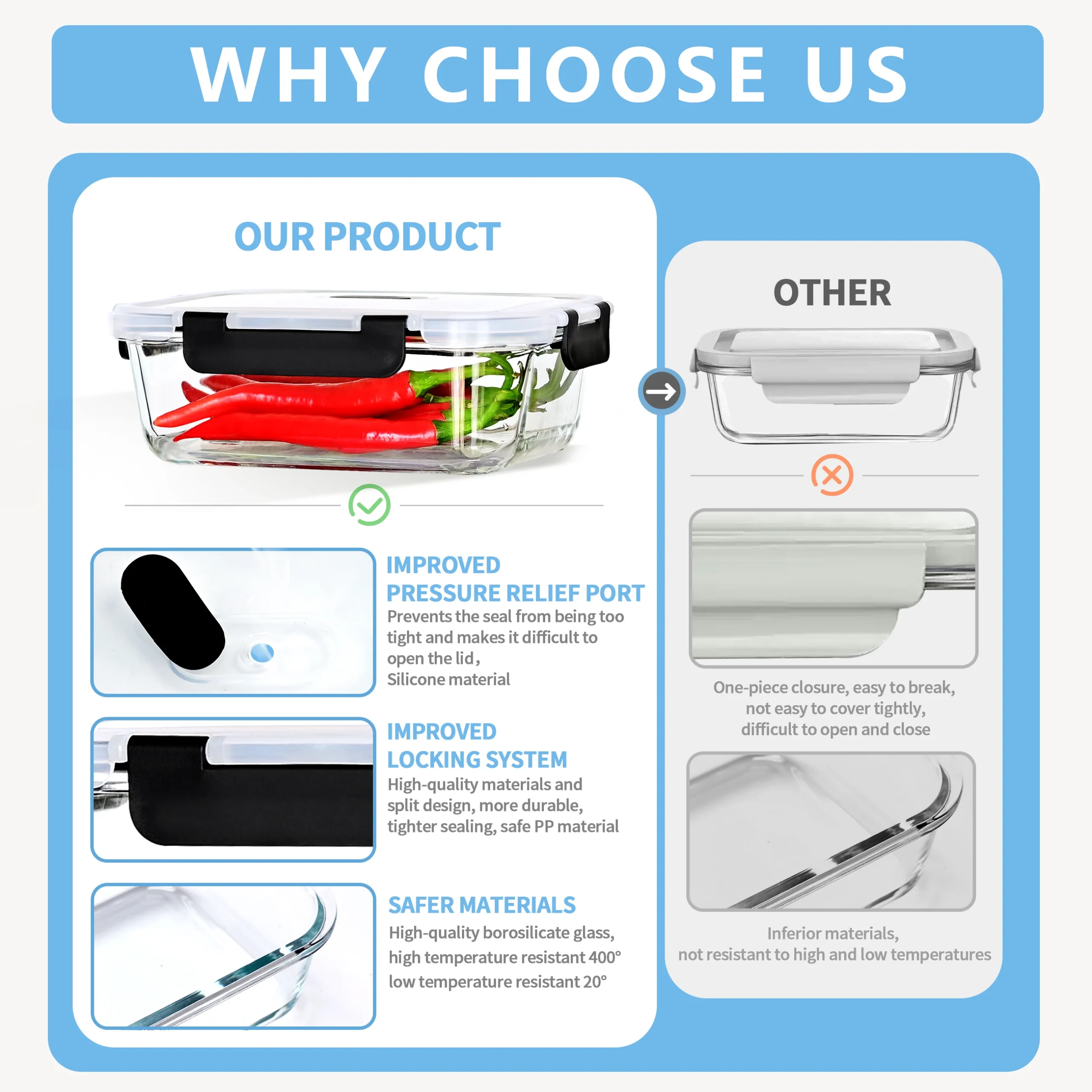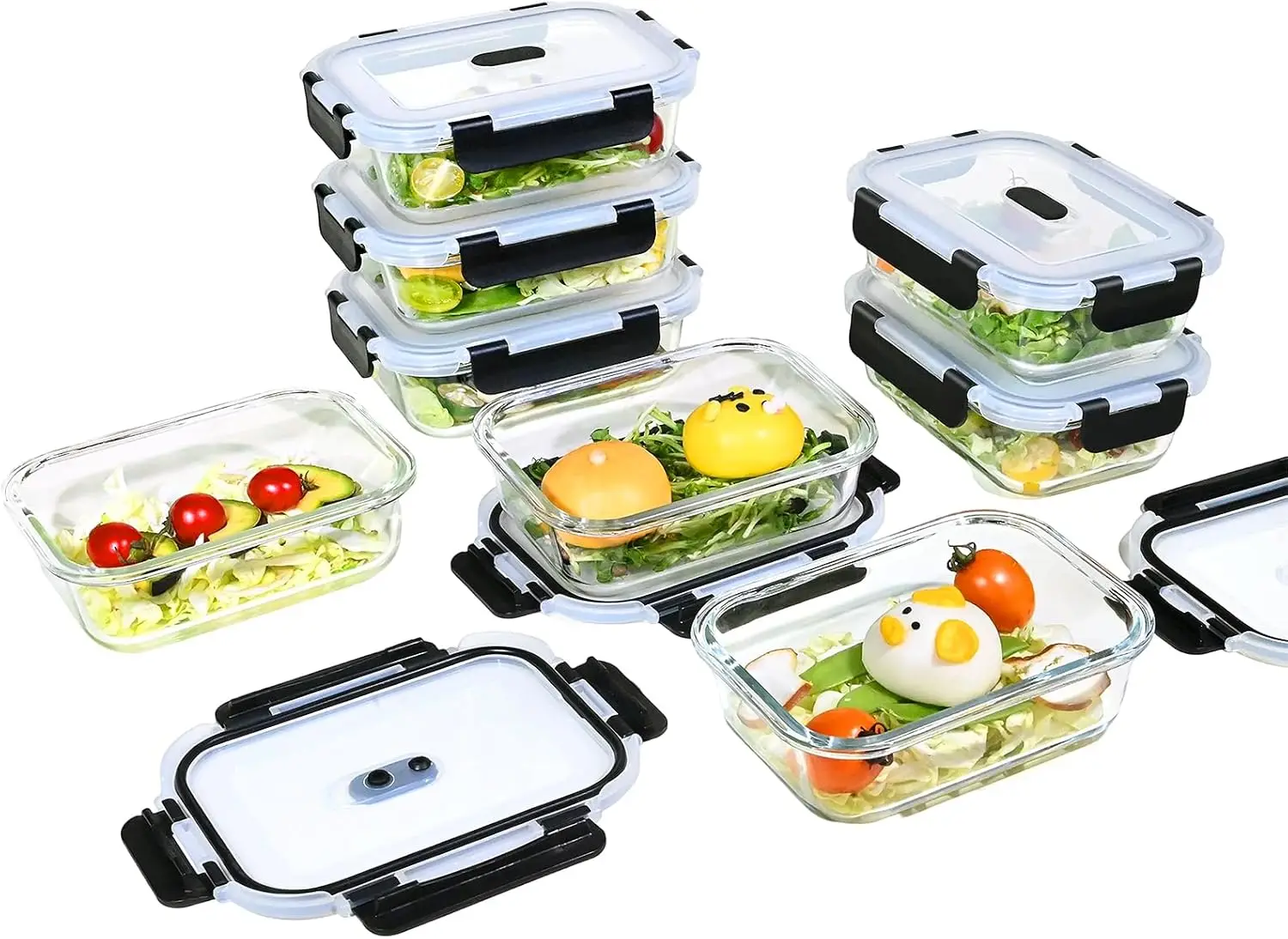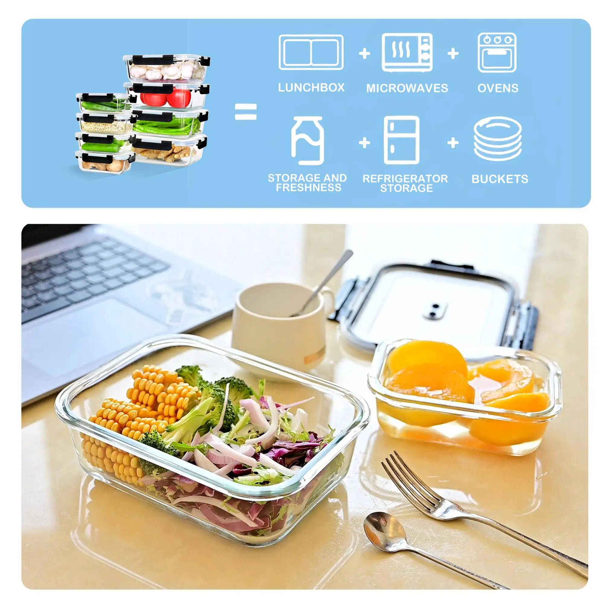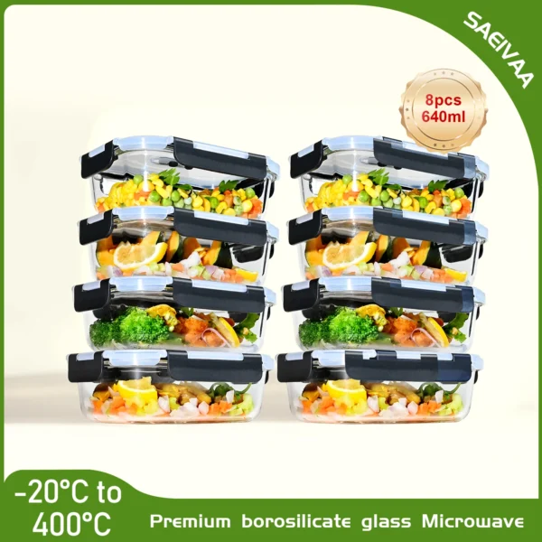 SAEIV Glas-Frischhaltedosen Set, 8-teilig, 640 ml