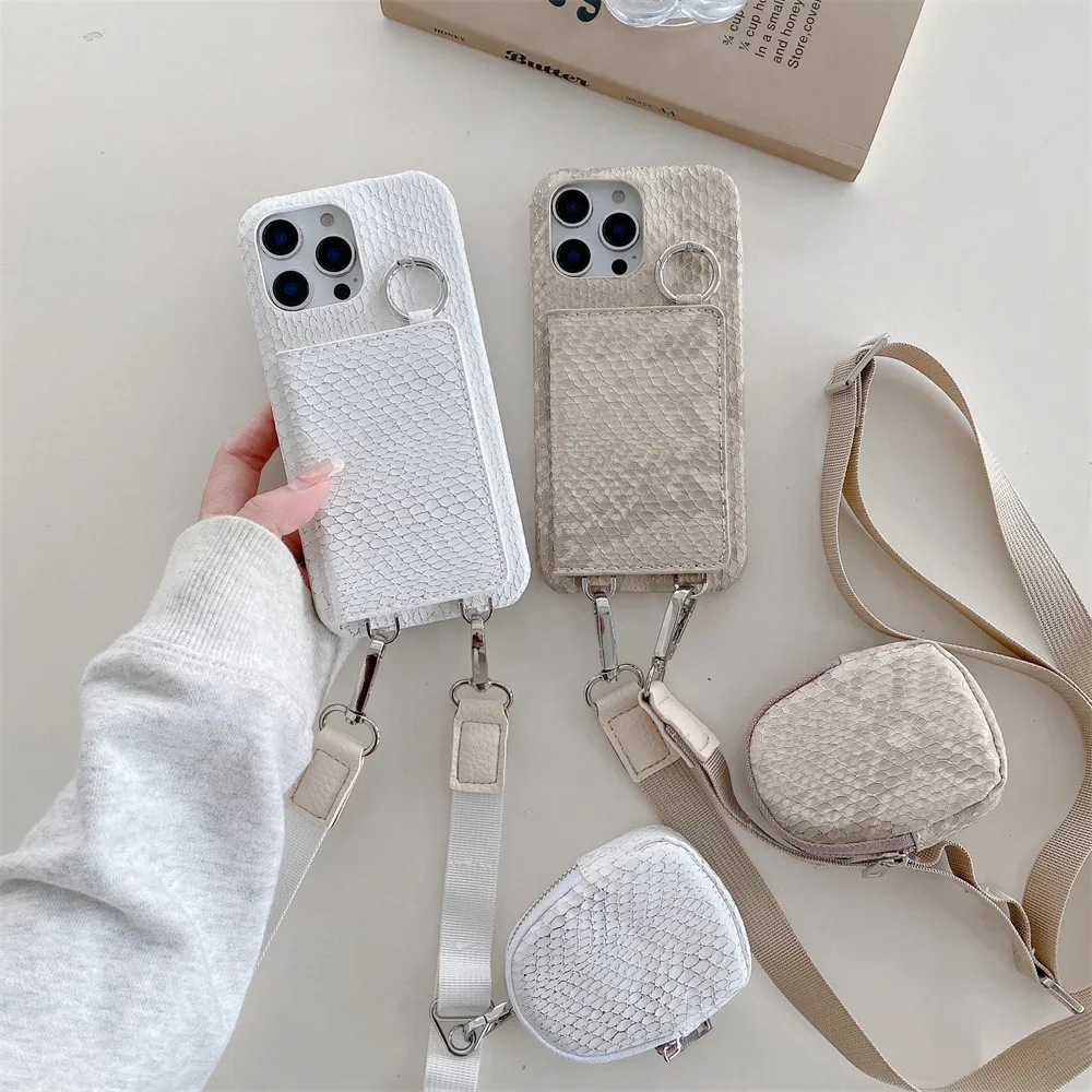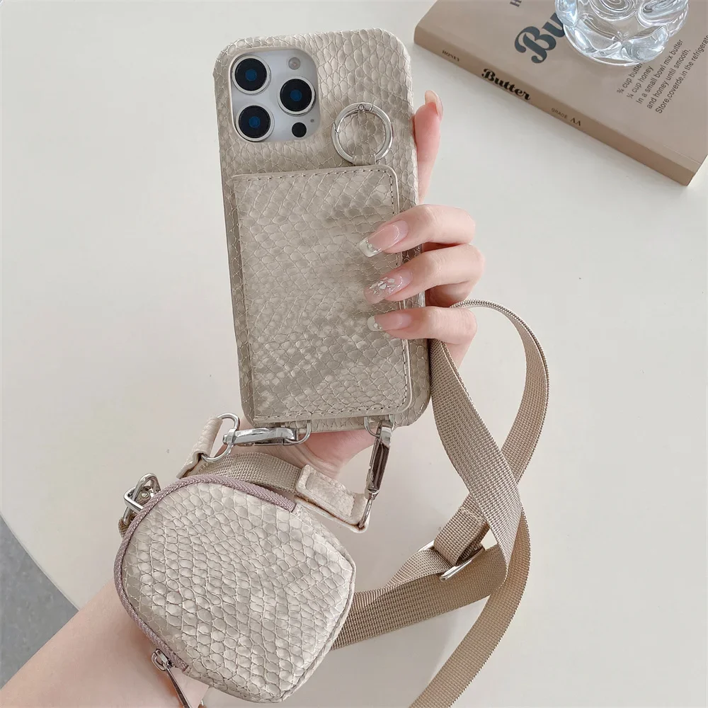 Schlangenleder-Umhänge‑Ringhalter Wallet Case für iPhone 11 – 17