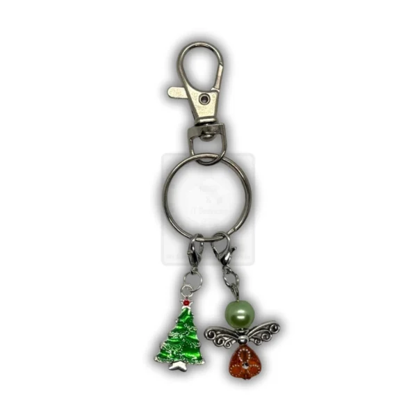 Schlüsselanhänger mit Weihnachtsbaum & Schutzengel – Handgefertigter Weihnachtsanhänger