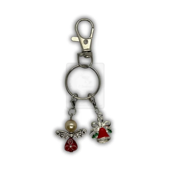 Schlüsselanhänger mit Weihnachtsglocke & Schutzengel – Creme-Rot – Handgefertigt
