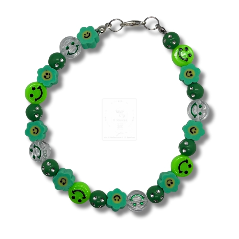 Smiley-Blüten Armband Grün Mix