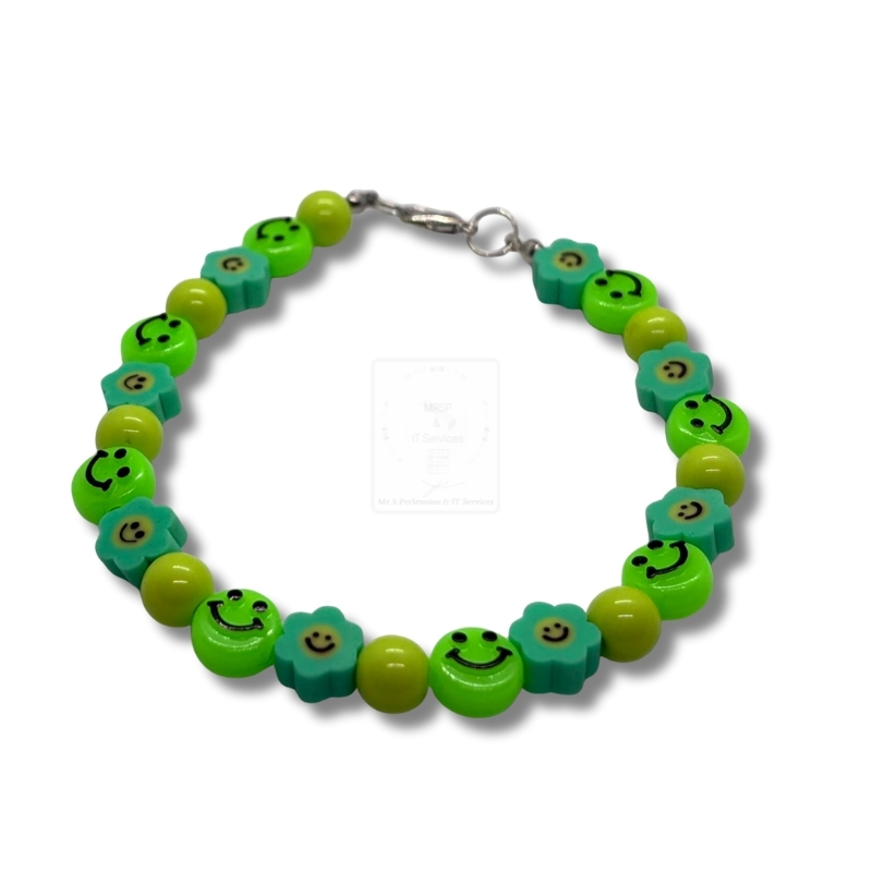 Smiley-Blüten Armband Neon Grün