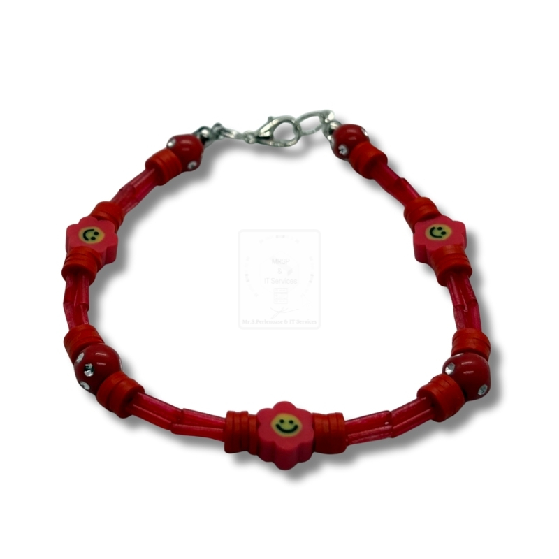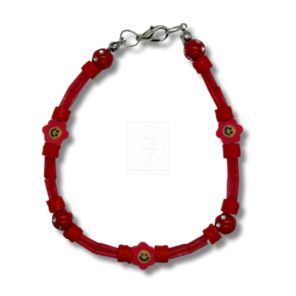 Smiley-Blüten Armband Rot Klar