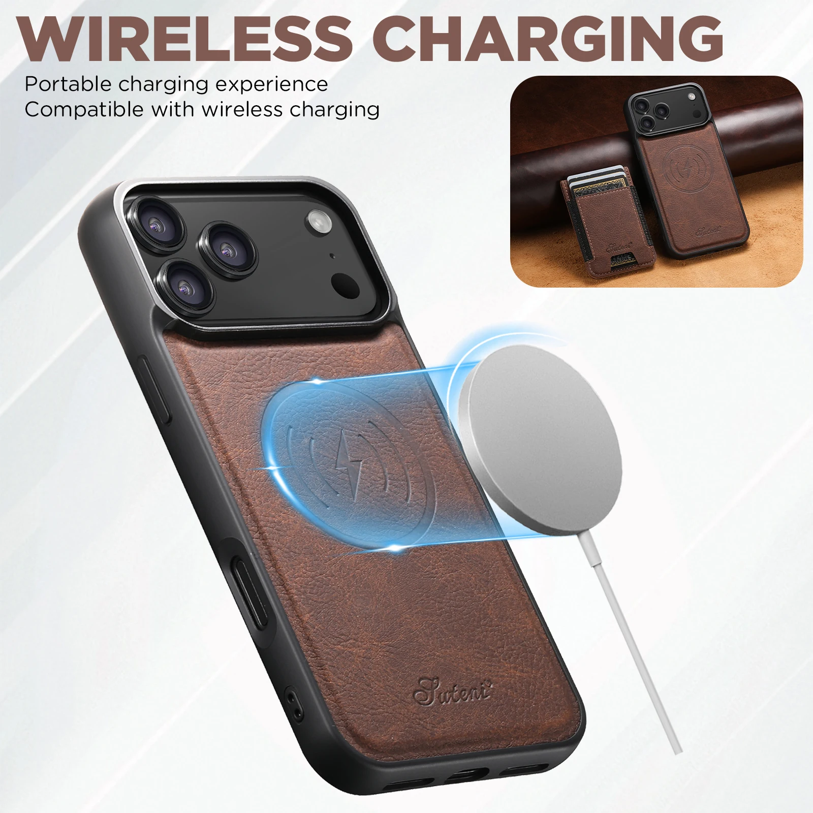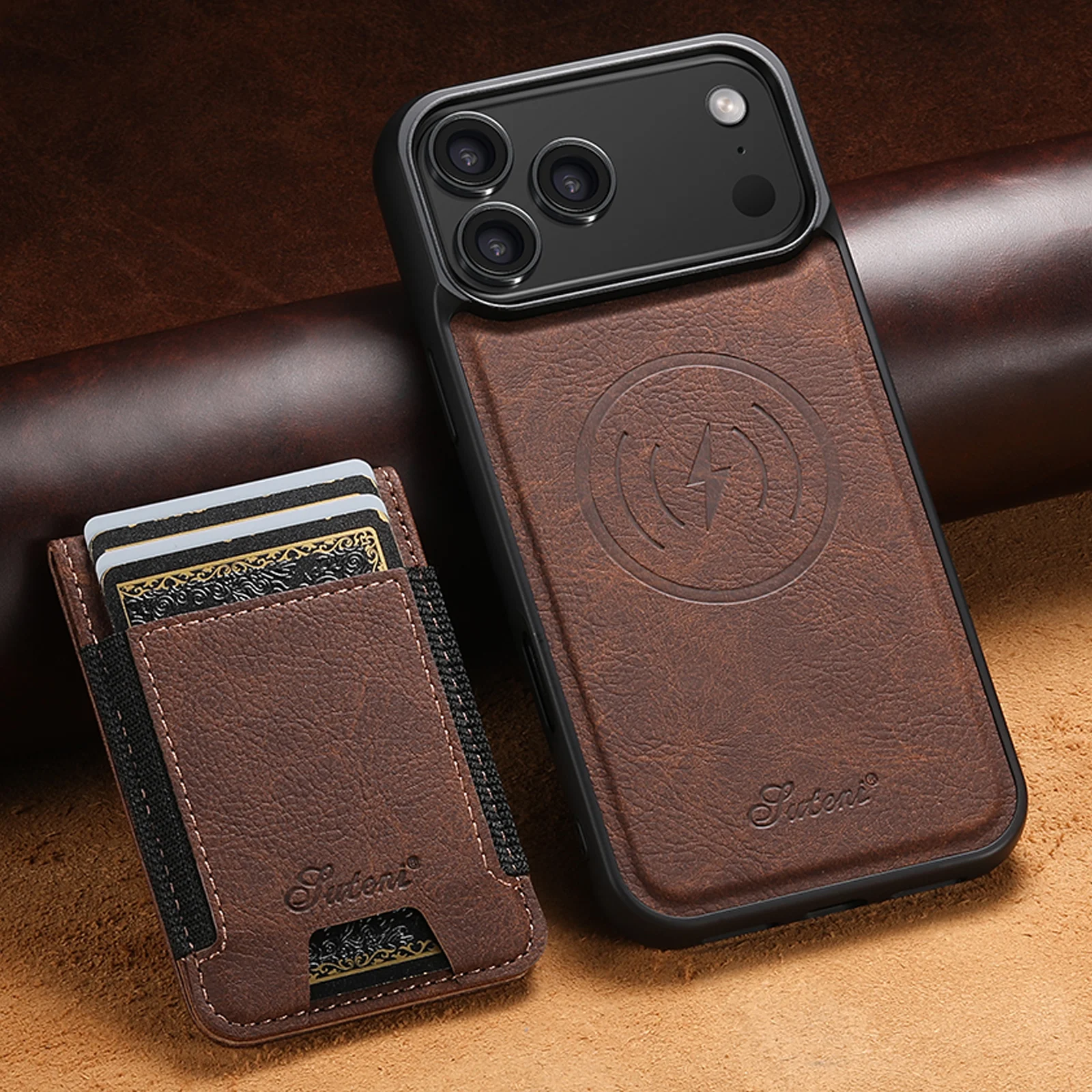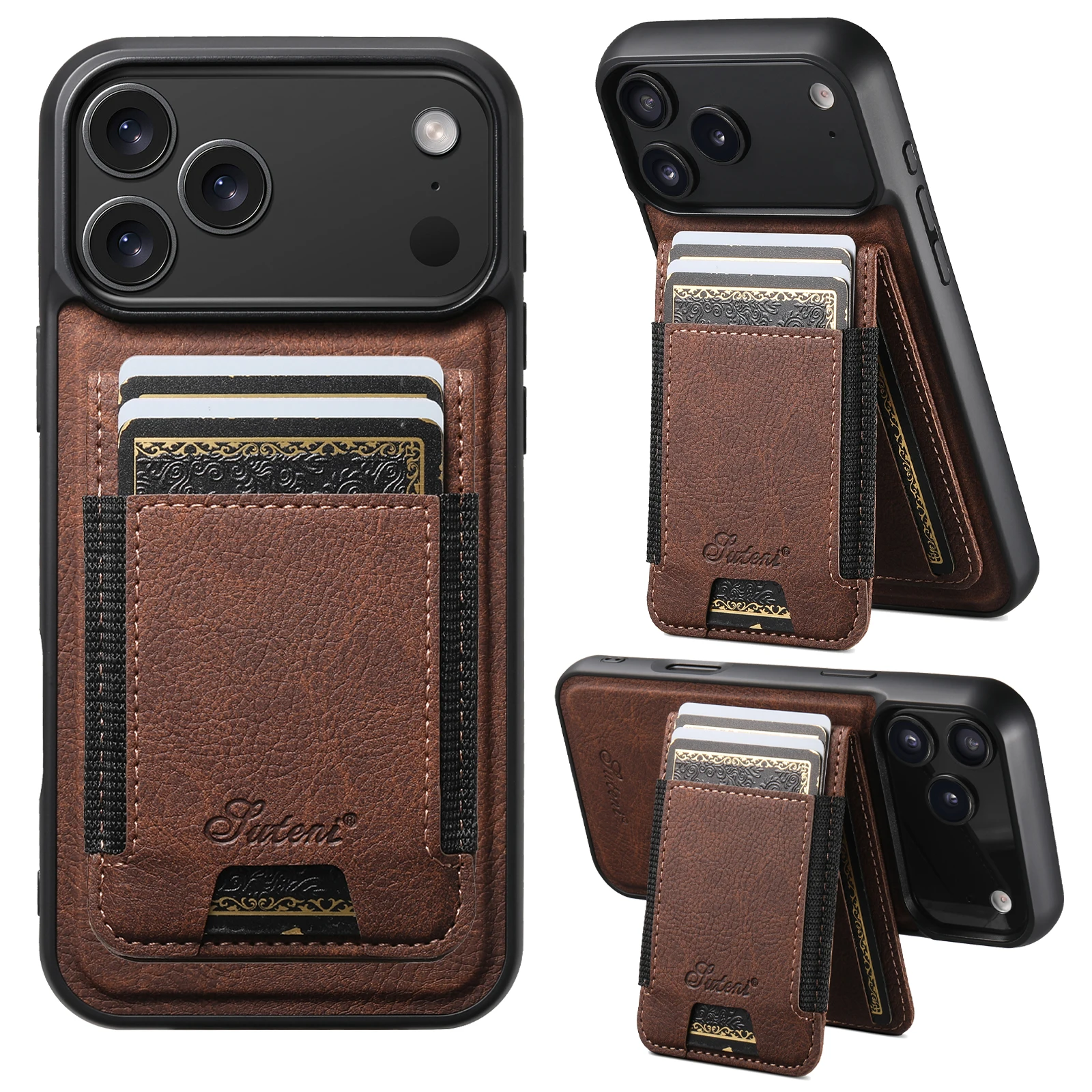 SUTENI Magnet‑Kartenhalter Flip Hülle mit MagSafe & Ständer (iPhone 12–17)