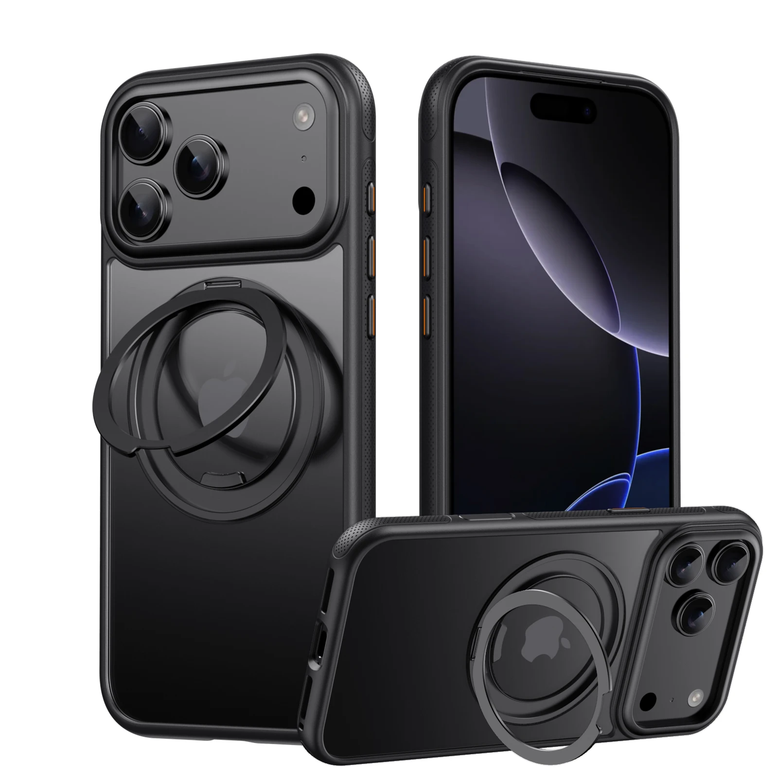 Transparente Hülle mit 360° Ring‑Kickstand (MagSafe) für iPhone 11–17