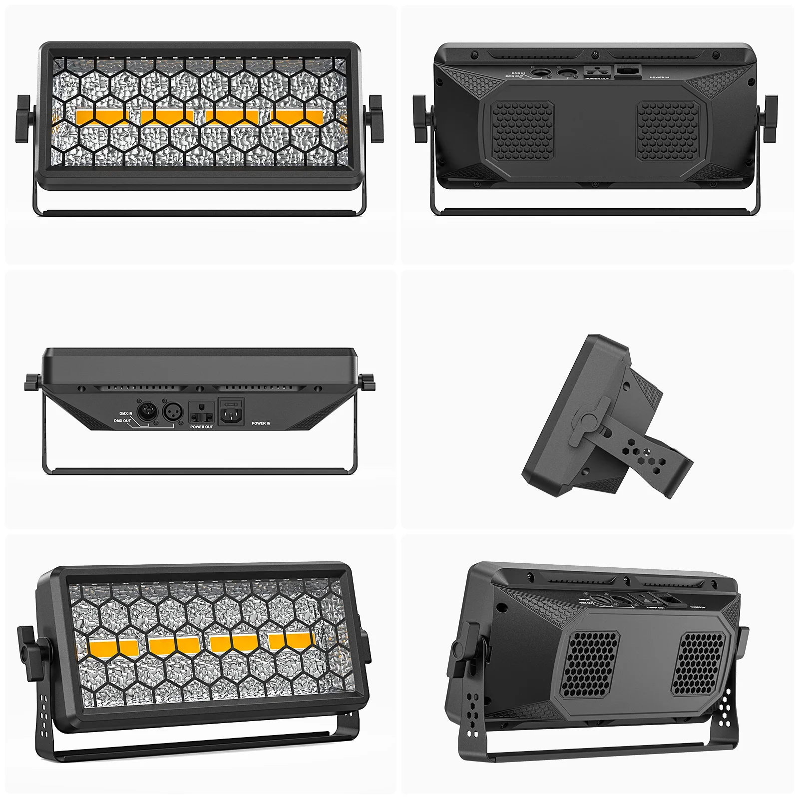 Dieses 150-Watt-Wall-Washer-Licht von U’King kombiniert vier 30-Watt-COB-Goldlicht-Spots mit 36 RGB-LEDs und bietet über 56 dynamische Effekte. Mit linearem Dimmen (0–100 %), Stroboskopfunktion (1–20 Hz), DMX/RDM-Kompatibilität und automatischen Programmen eignet sich dieses Licht hervorragend für Bühnen, Partys, Theater und Events. Das Gerät hat eine Lebensdauer von 50.000 Stunden, ist aus Eisen und Nylon gefertigt und lässt sich flexibel montieren. Optimale Projektionsdistanz: 3–6 m. Maße: 40 x 19,2 x 18,5 cm. Spannung: 100–240 V.