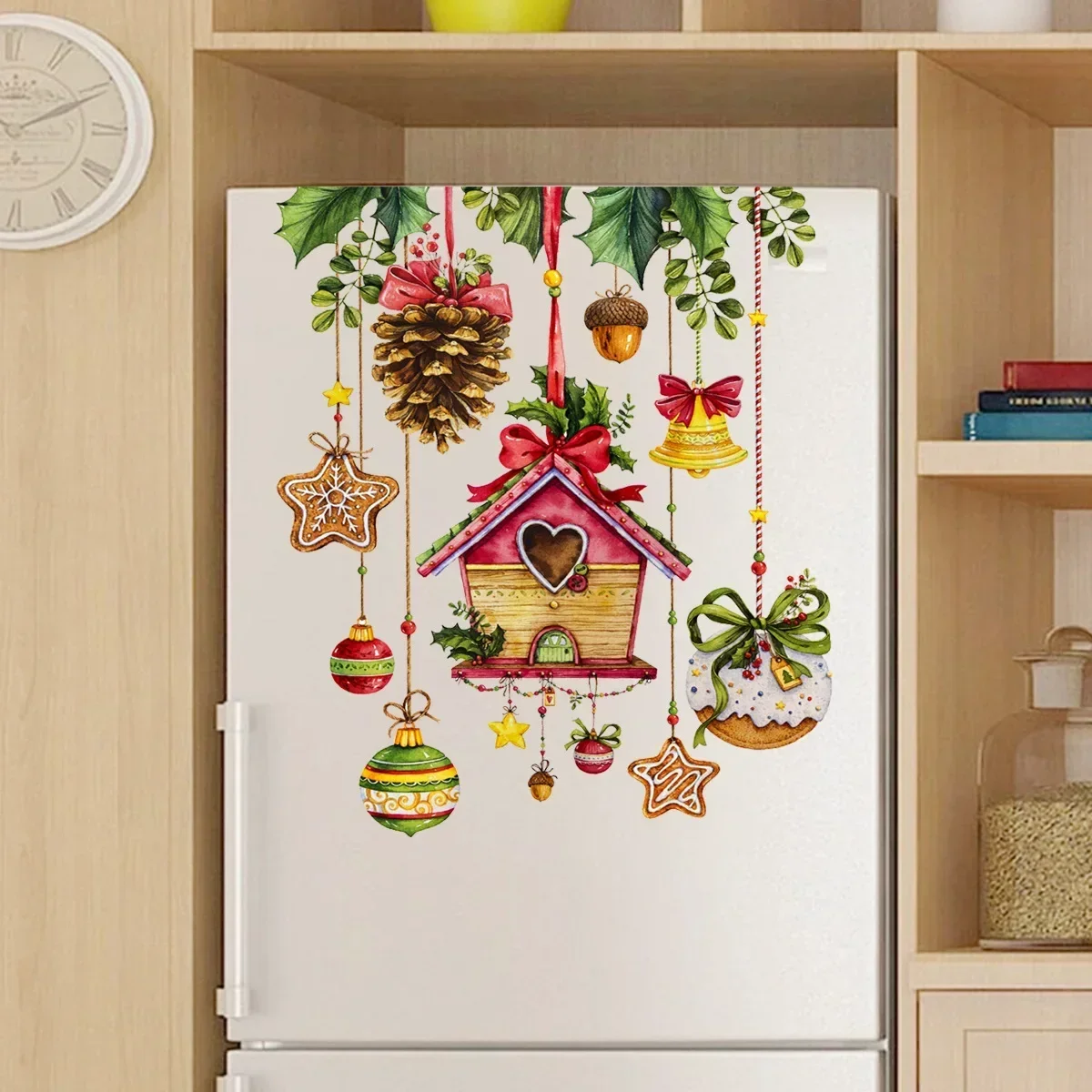 Glasaufkleber Weihnachten – Holzhaus & Pinienzapfen-Motiv