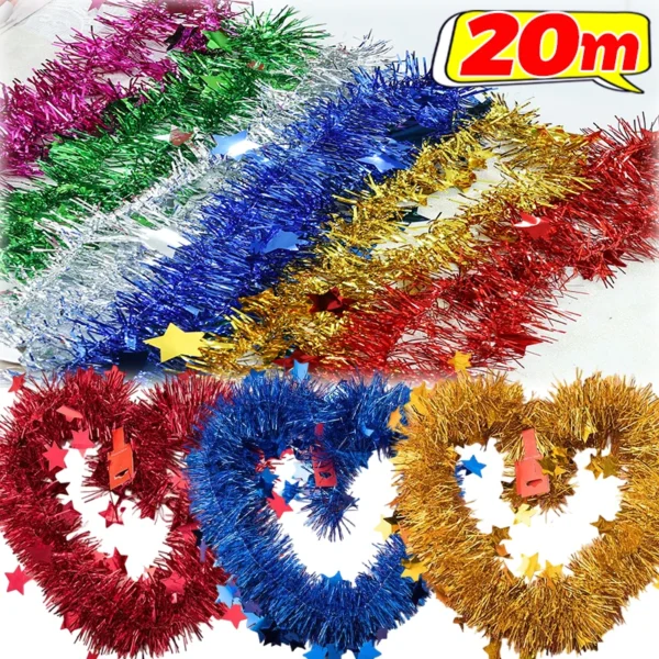 Diese farbenfrohe Lametta‑Girlande mit kleinen Sternverzierungen eignet sich ideal für Kränze, Weihnachtsbäume, Partys oder das Büro. Glänzend und dekorativ.