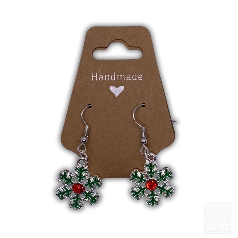 Weihnachts-Ohrringe „Schneeflocke“ – Grün/Rot