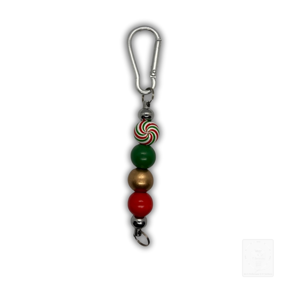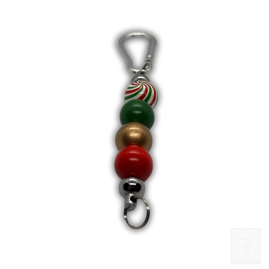 Weihnachtsanhänger mit Zuckerstangen-Perle – Grün, Gold & Rot – Handmade