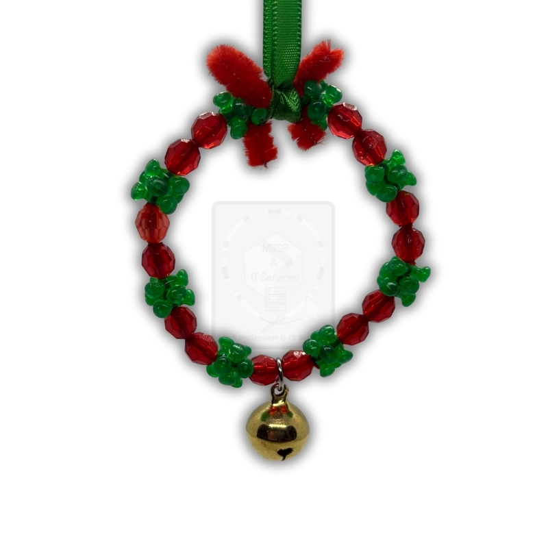 Weihnachtsanhänger Perlenrot‑Grün mit goldfarbenem Glöckchen