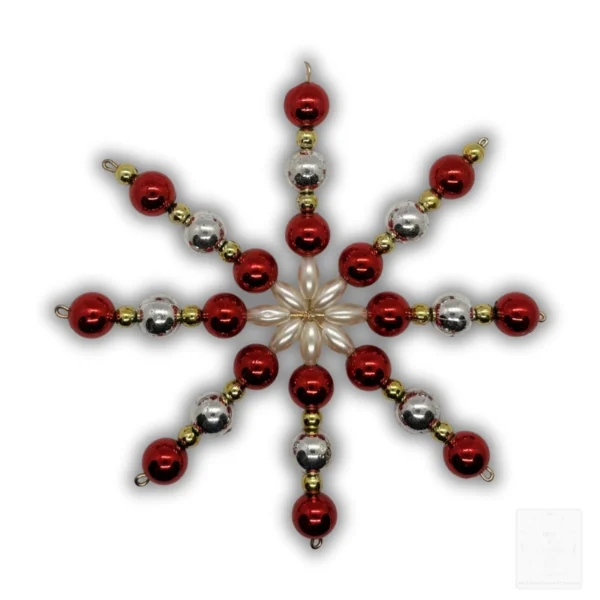 Weihnachtsstern Anhänger Rot-Silber Perlen