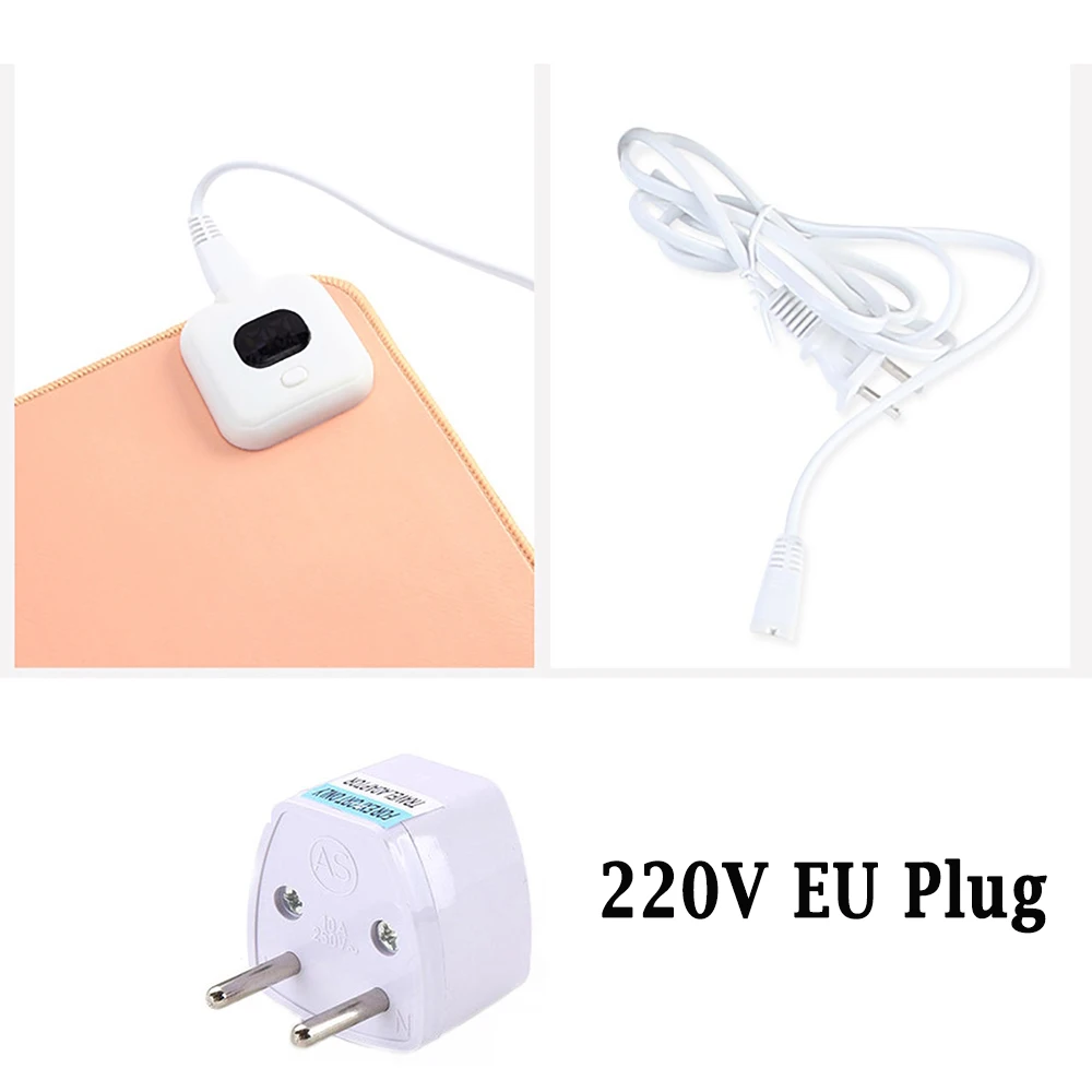 Beheiztes Winter-Mauspad aus PU-Leder 26×52 cm mit Timer und 220V‑EU‑Stecker