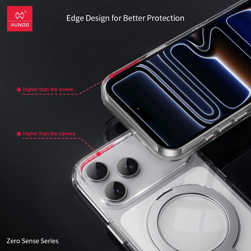 Diese Xundd drehbare Magnethülle bietet eine transparente Rückseite und einen vollständig rotierbaren Ständer, der sich im 360°‑Winkel ausrichten lässt. Der integrierte MagSafe‑Ring ermöglicht kabelloses Laden und Zubehörbefestigung. Stoßdämpfende Ränder schützen das Gerät bei Stürzen. Die Hülle bleibt schlank und erlaubt uneingeschränkten Zugriff auf Kamera, Tasten und Anschlüsse durch präzise Aussparungen. Für Nutzer, die Flexibilität und klaren Look kombinieren wollen.
